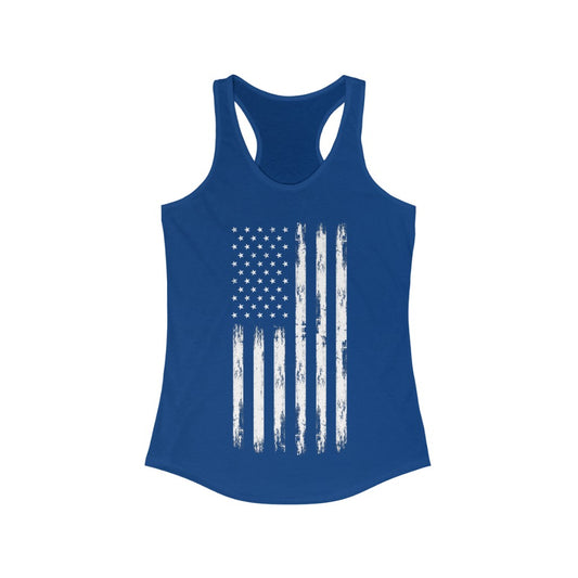American Flag Women Racerback Tank Top, USA Patriotic US 4th of July Festival Yoga Workout Sexy Summer Muscle Sleeveless Shirt