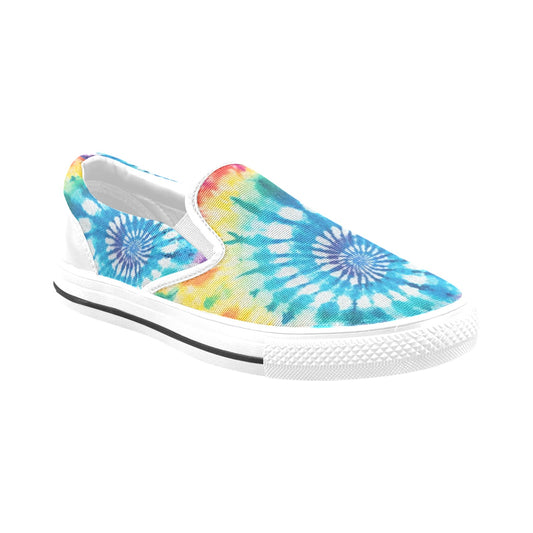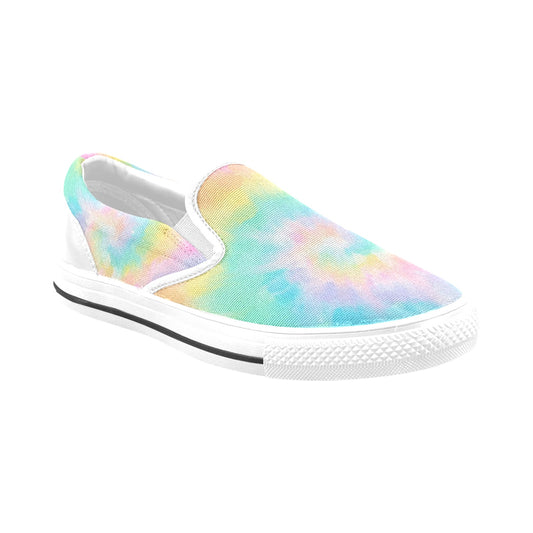 Pastel Tie Dye Women Slip On Shoes, Rainbow Canvas Sneakers White Low Top Casual Ladies Aesthetic Designer Flat Slide On