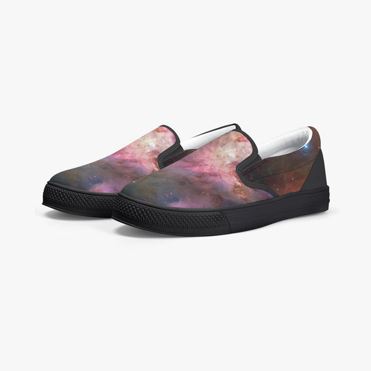 Galaxy Space Slip On Shoes, Stars Universe Men Women Canvas Sneakers Black Low Top Casual Custom Ladies Aesthetic Designer Flat Slide On