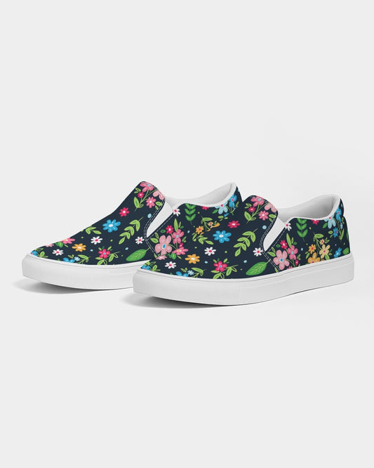 Floral Women Slip On Canvas Shoes, Ditsy Daisy Flowers Print Sneakers Girls White Low Top Custom Ladies Aesthetic Designer Flat Slide On