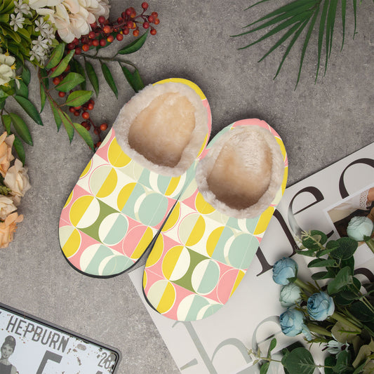 Mid Century Modern Fluffy Slippers, 1960s 70s Faux Fur Fuzzy Puffy Women Ladies Men House Slide Memory Foam Bedroom Warm Slip On Shoes