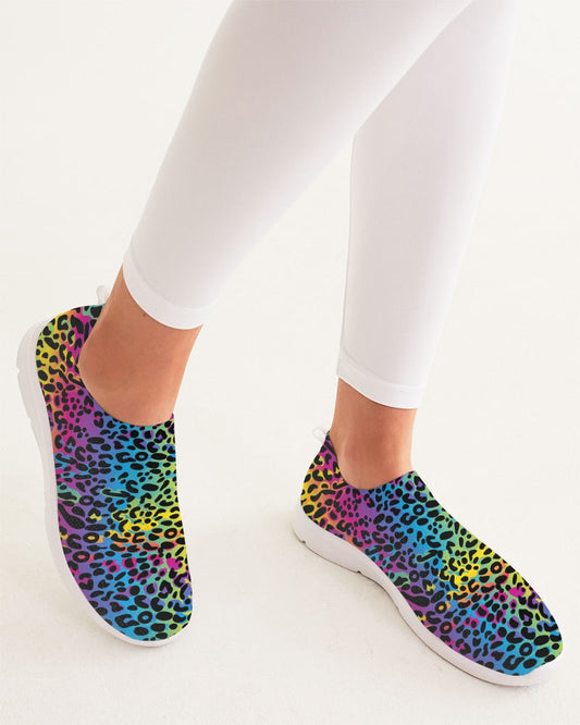 Rainbow Leopard Slip On Women Shoes, Animal Print Breathable Ladies Sneaker Print Designer Custom Mesh Gym Workout Design Trainers