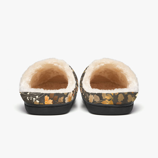 Floral Fluffy Slippers, Brown Flowers Faux Fur Fuzzy Puffy Women Ladies Men House Slide Memory Foam Bedroom Warm Designer Slip On Shoes