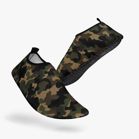 Camo Water Shoes, Camouflage Brown Black Men Women Aqua Beach Quick Dry Waterproof Swim Pool Slippers Kayak Slip On River Boat Youth Kids