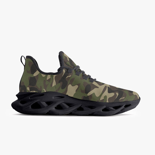 Camo Sneakers, Green Army Camouflage Bouncing Mesh Men Women Knit Running Athletic Sport Workout Breathable Lace Up Fitness Shoes Trainers