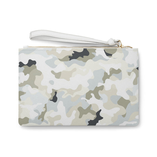 White Camo Clutch Wristlet Purse, Camouflage Vegan Leather with Pocket Zipper Evening Modern Bag Strap Phone Wallet for Women