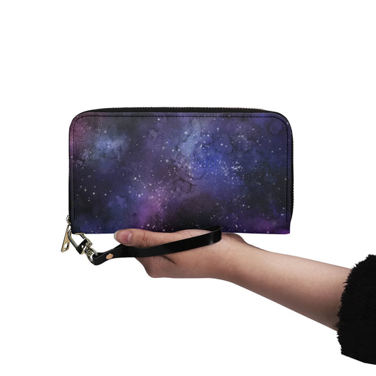 Galaxy Space Wristlet Leather Wallet Women, Stars Universe Vegan Zipper Zip Around Credit Cards Pocket Ladies Pouch Slim Strap Clutch Purse