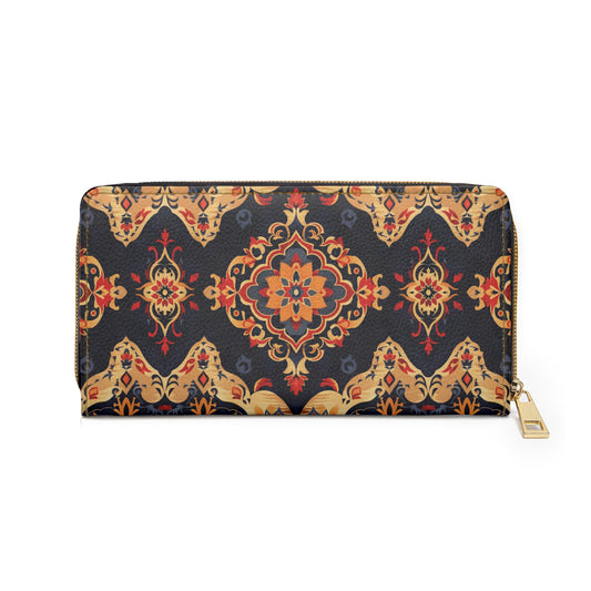 Boho Leather Wallet Women, Bohemian Ethnic Vegan Zipper Zip Around Coins Credit Cards Pocket Cash Ladies Pouch Slim Clutch Purse Gift