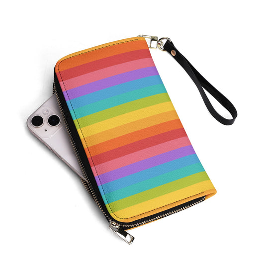 Rainbow Wallet Wristlet Women, Colorful Striped Designer Cute Female Clutch Purse Print Vegan Leather Coin Pockets Zipper Strap Pouch Ladies