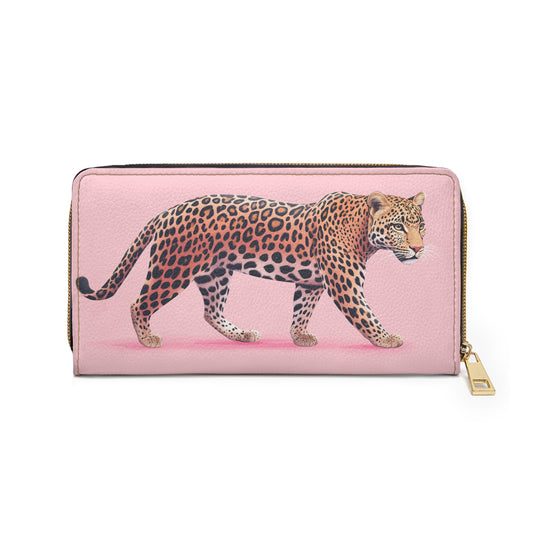 Leopard Leather Wallet Women, Pink Animal Cheetah Vegan Zipper Zip Around Coins Credit Cards Pocket Cash Ladies Female Slim Clutch Purse