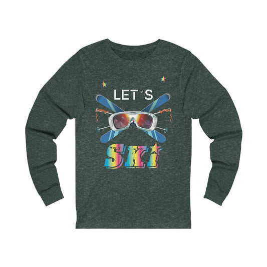 Let's Ski 80s Style Shirt, Retro Skiing Vintage 90s Party Costume Skier Mountain Snow Vacation Men Women Long Sleeve Tee
