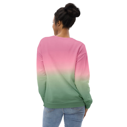 Pink Green Ombre Sweatshirt, Gradient Tie Dye Crewneck Fleece Cotton Sweater Jumper Pullover Men Women Unisex Adult Aesthetic Top