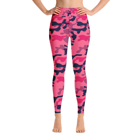Pink Camouflage Yoga Leggings, Women Workout Pants Women Fuchsia Camo High Rise Waist Tights Printed Cute Graphic Gym Training Activewear