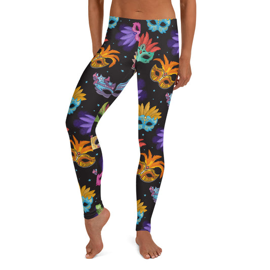 Mardi Gras Leggings, Masquerade Venice Carnival Masks Festival Harlequin Colorful Party Women Printed Yoga Pants Cute Print Graphic Workout
