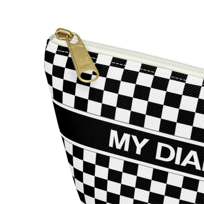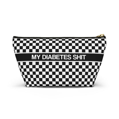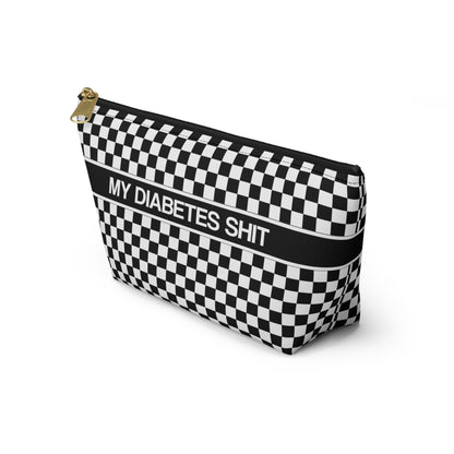 My Diabetes Shit Bag, Funny Diabetic Supply Case Black White Checkered Type One 1 Accessory Zipper Travel Toiletry Pouch Gift w T-bottom