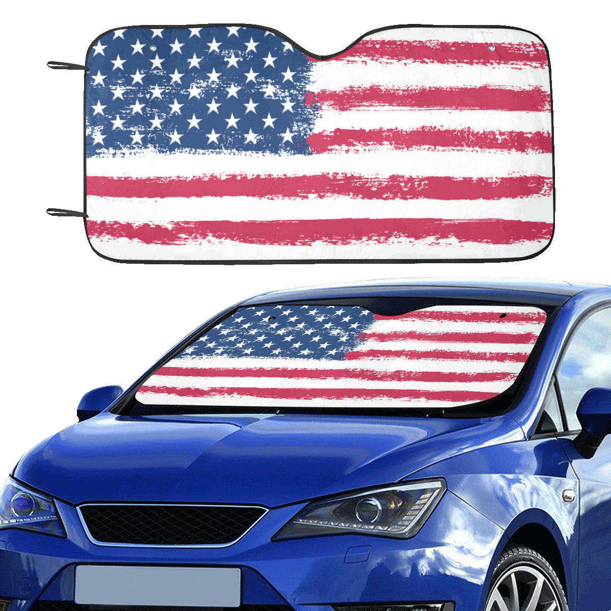 American Flag Windshield Sun Shade, Car Accessories Auto Black White USA Patriot Protector Window Visor Screen Decor 55" x 29.53"