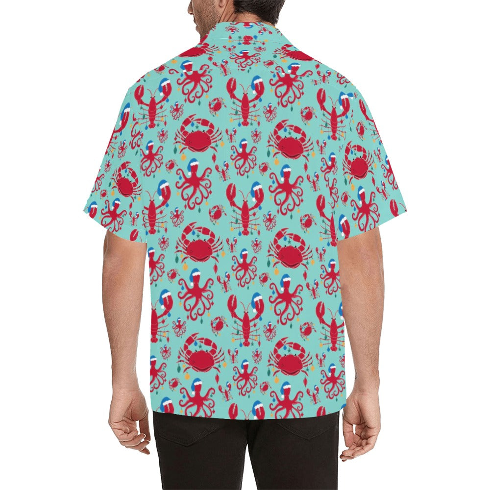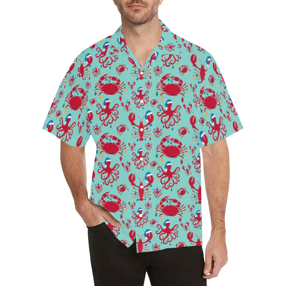 Beach Christmas Men Hawaiian shirt, Lobster Octopus Crab Ocean Dad Funny Print Vintage Retro Tropical Hawaii Aloha Plus Size Button Up Shirt