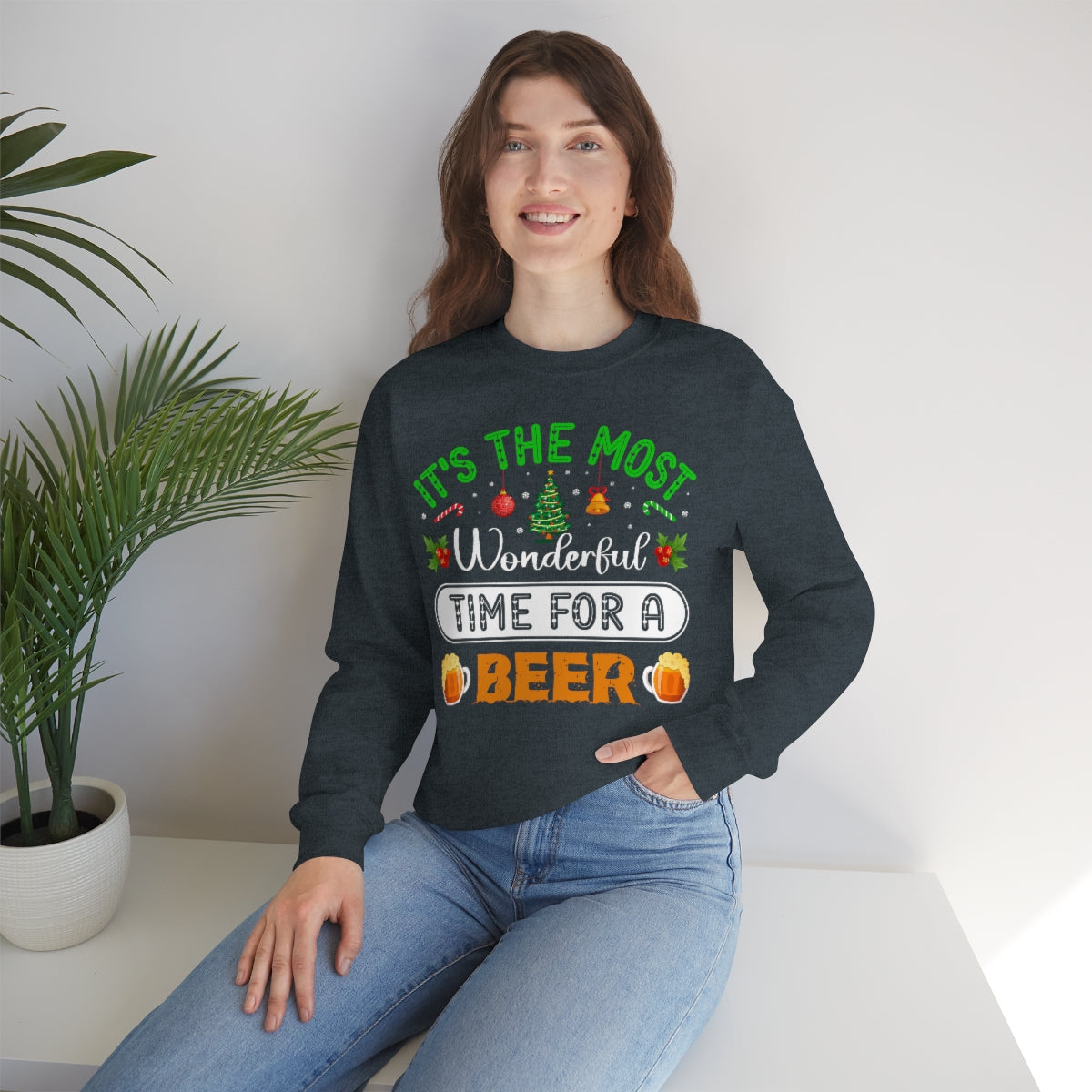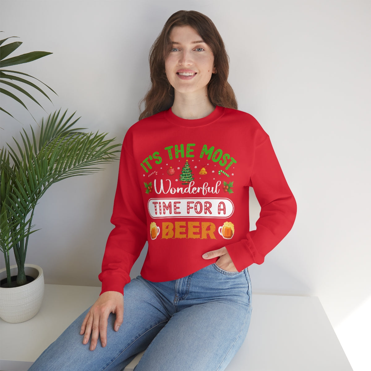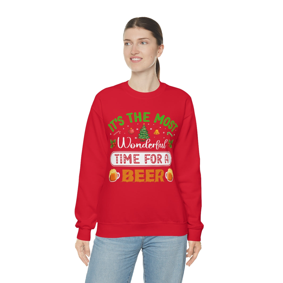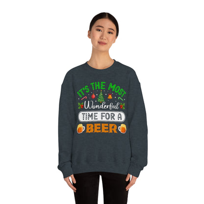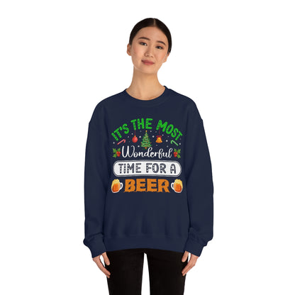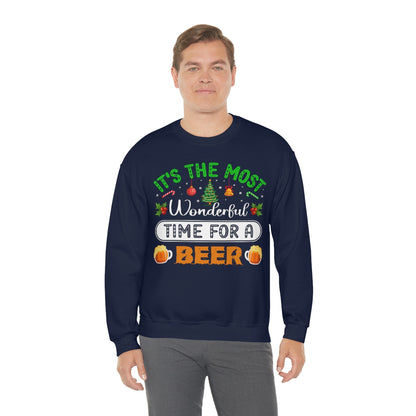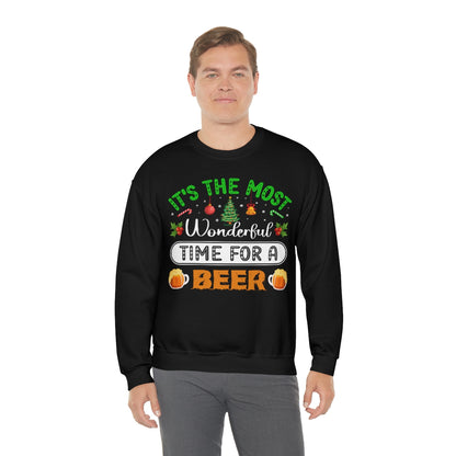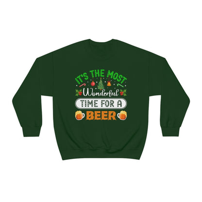Beer Ugly Holiday Sweater, Wonderful Time Drinking Christmas Xmas Print Women Men Funny Party Winter Outfit Sweatshirt Gift
