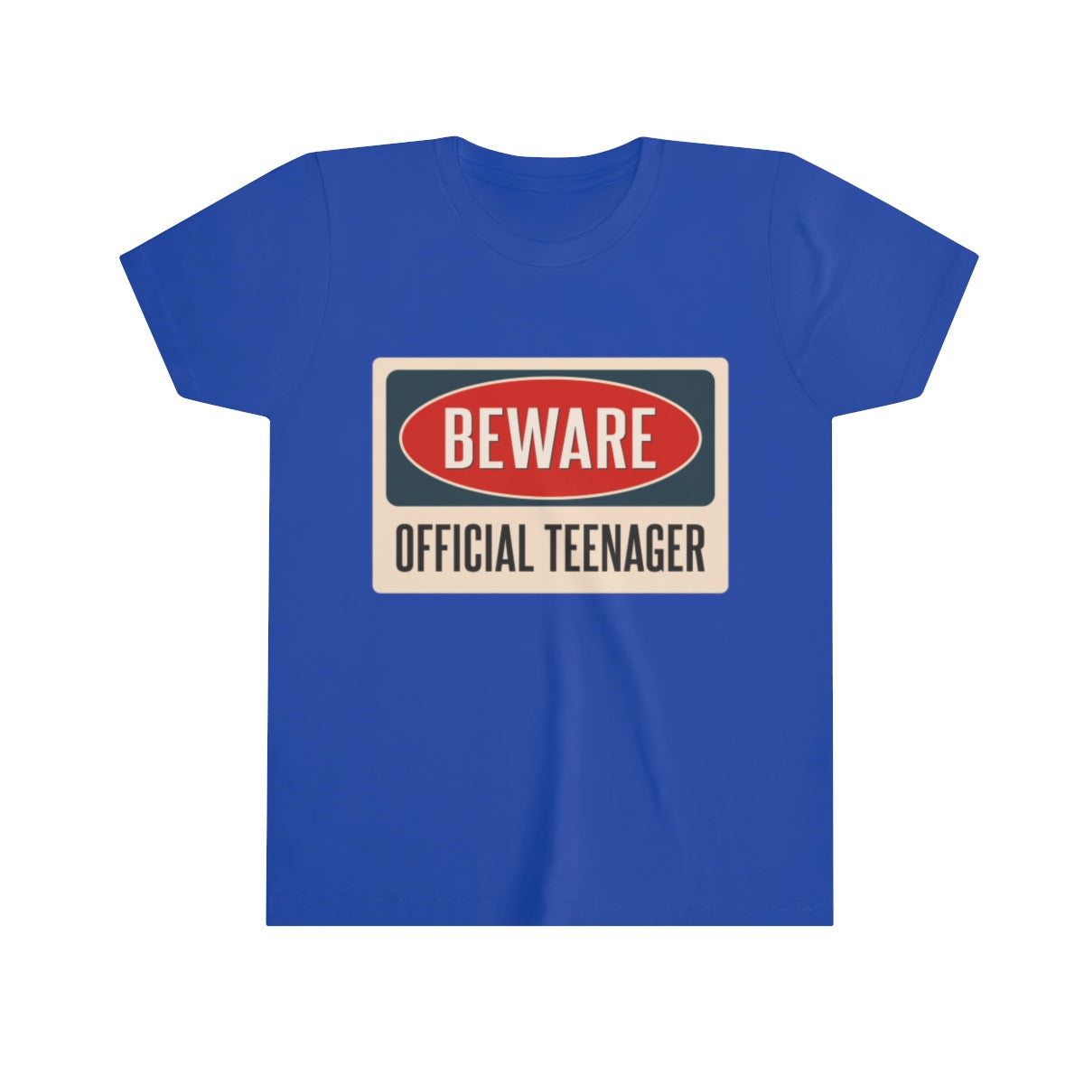 Beware Official Teenager Youth Tshirt, Warning 13 Year Old 13th Birthday Party Funny Caution Teenage Boys Girls Kids Shirt Gift Present