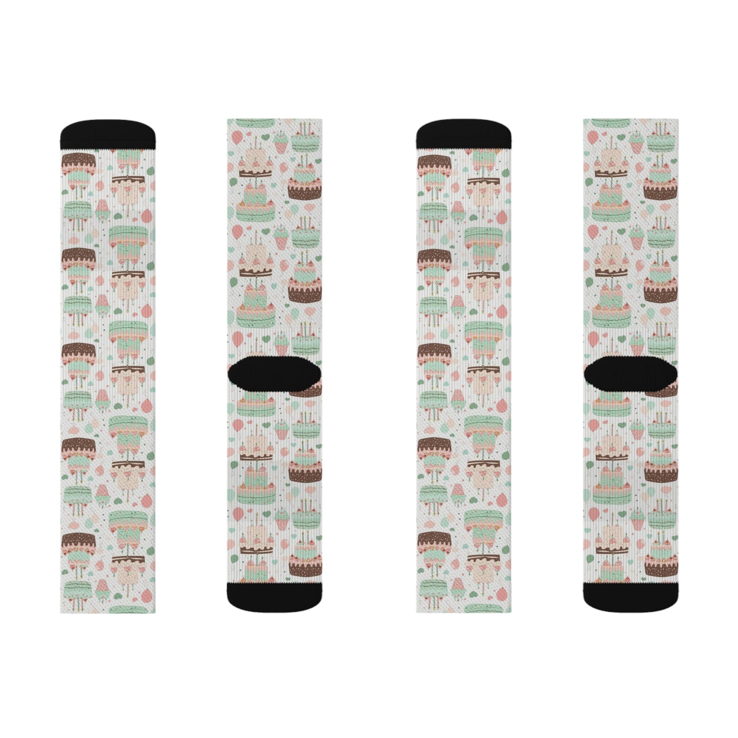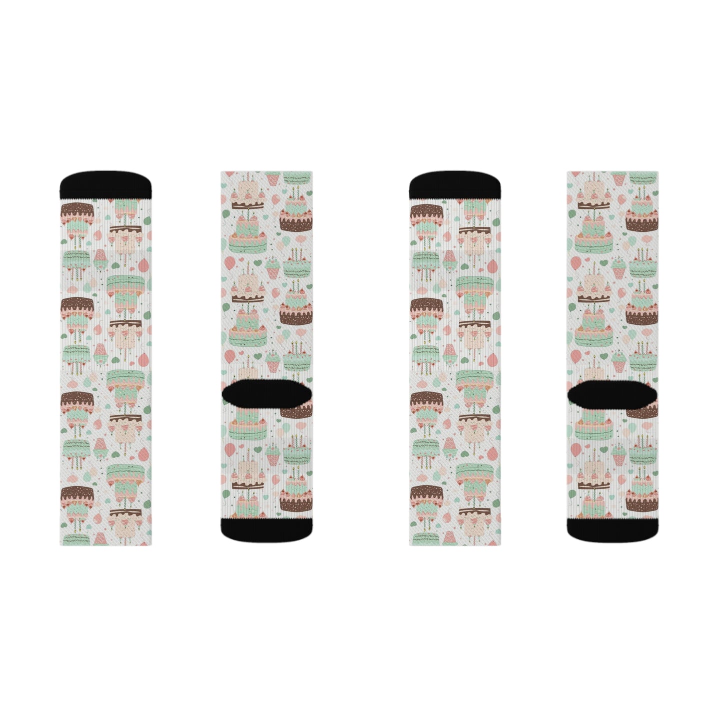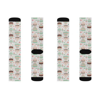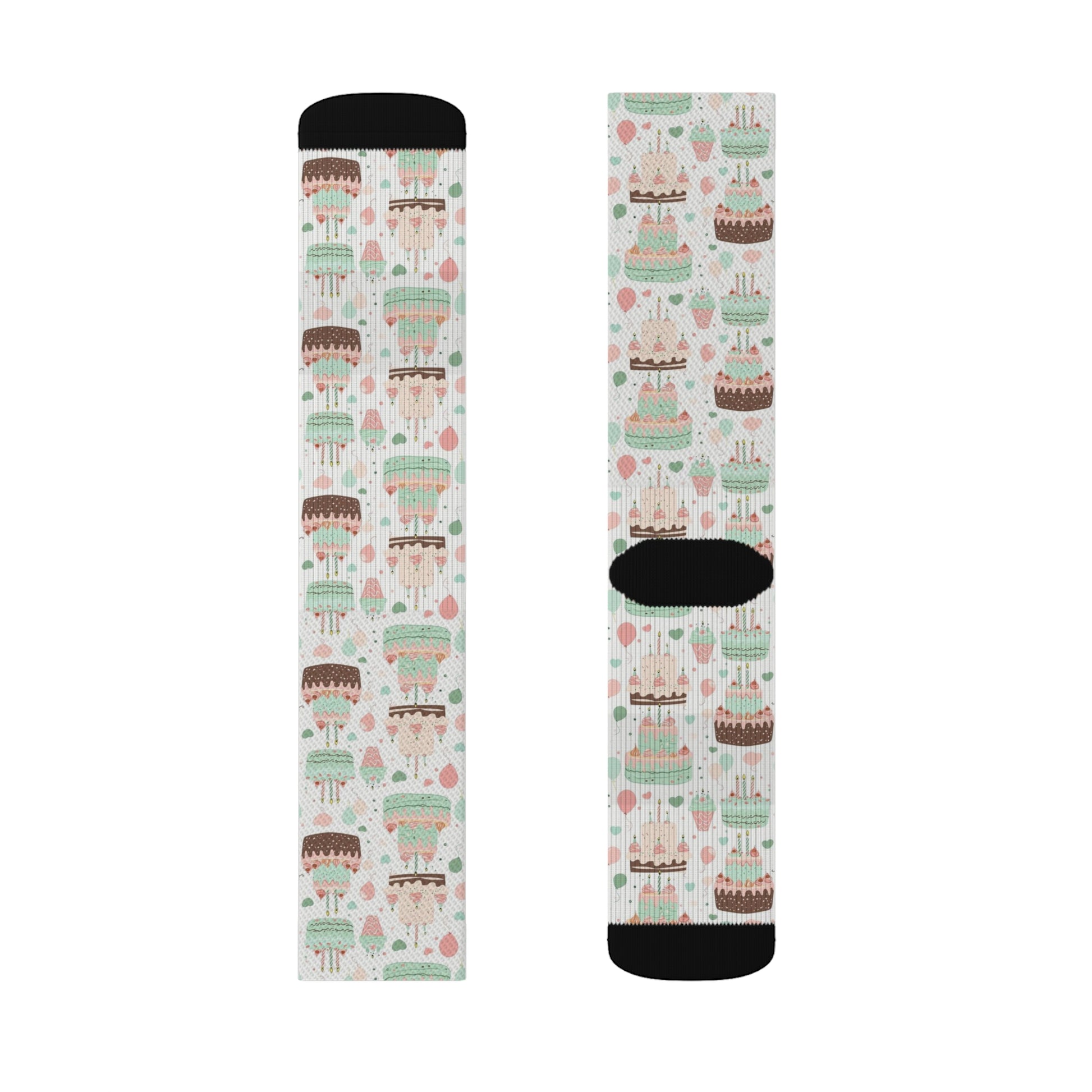 Birthday Socks, Happy Cake Party Crew Sublimation Women Men Designer Fun Novelty Cool Funky Crazy Casual Cute Unique Dress