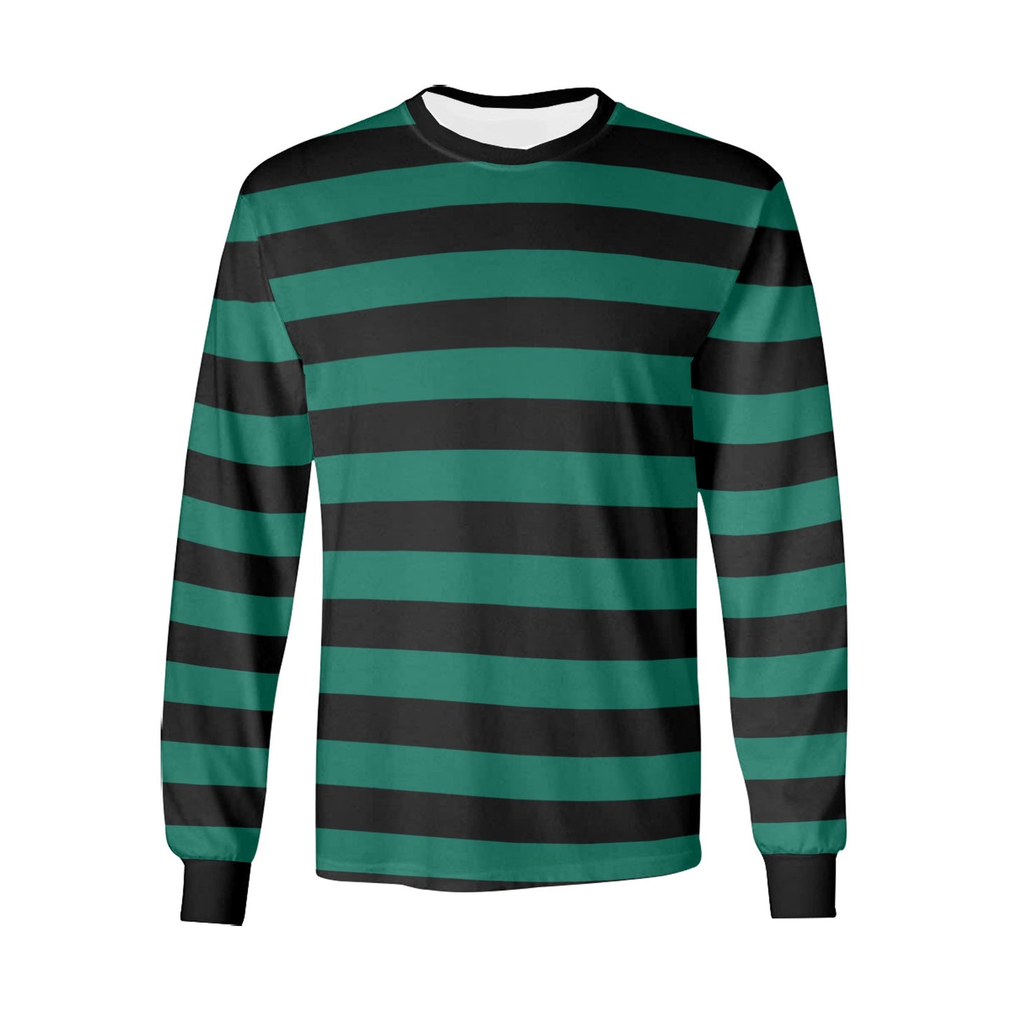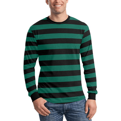 Black and Green Men Long Sleeve Striped TShirt, Graphic Vintage Retro Broad Stripes Crewneck Unisex Women Designer Male Guys Tee