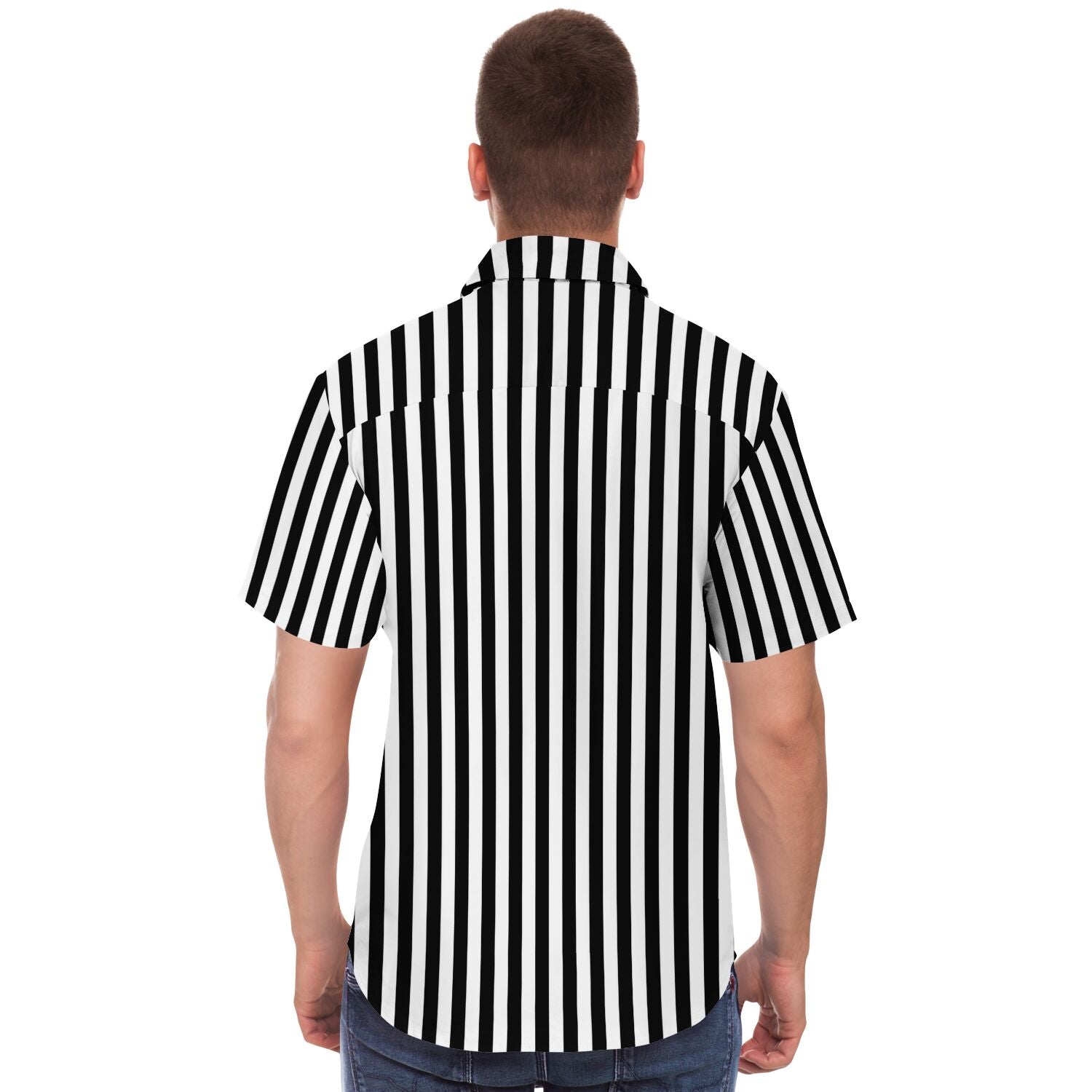Black and White Vertical Striped Men Button Up Shirt, Short Sleeve Print Casual Buttoned Down Summer Male Guys Collared Designer Dress