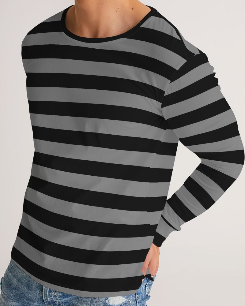 Black Grey Striped Men Long Sleeve Tshirt, Wide Stripes Unisex Women Designer Graphic Aesthetic Crew Neck Tee
