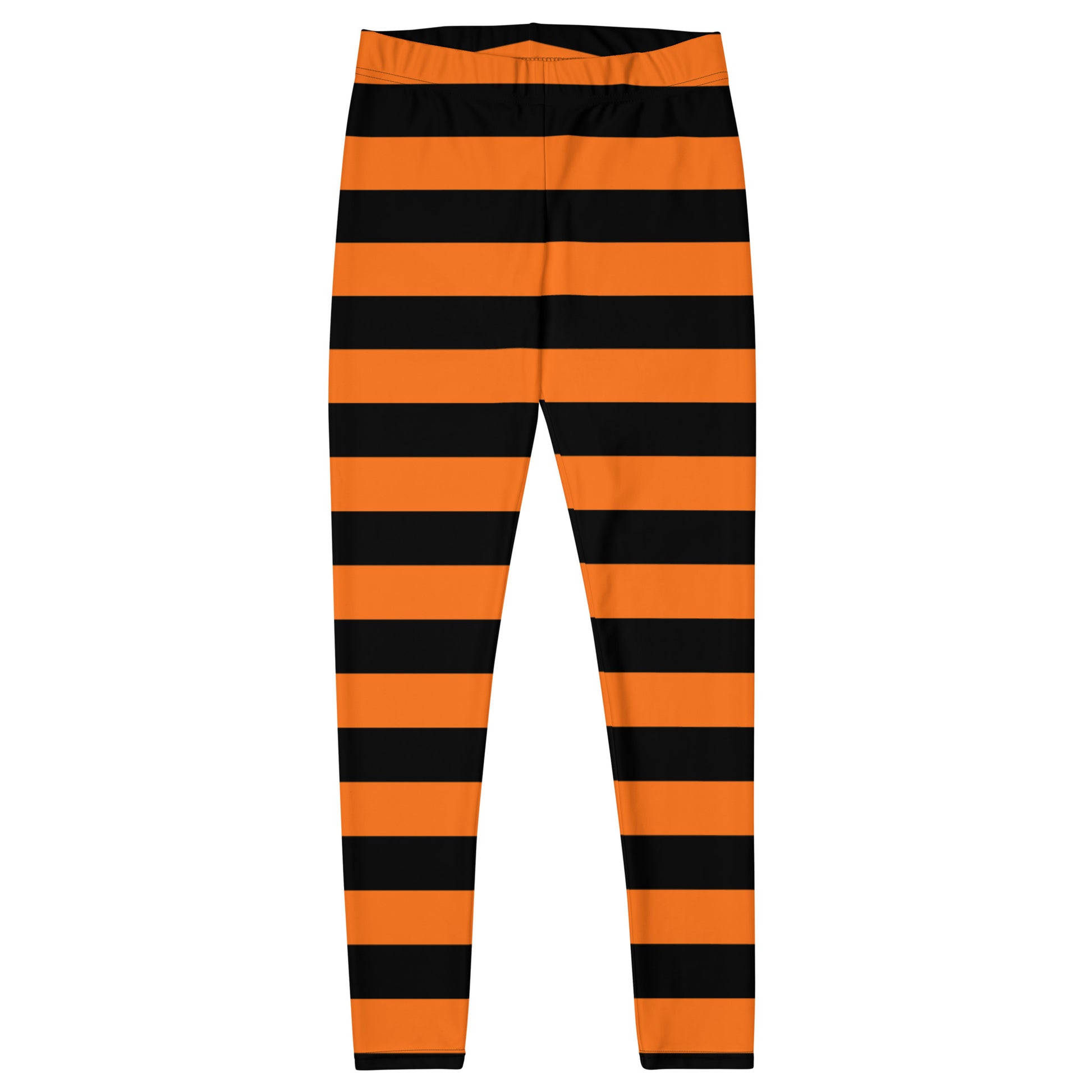 Black Orange Striped Leggings Women, Halloween Witch Tights Goth Pumpkin Printed Yoga Pants Cute Adult Workout Designer Gift