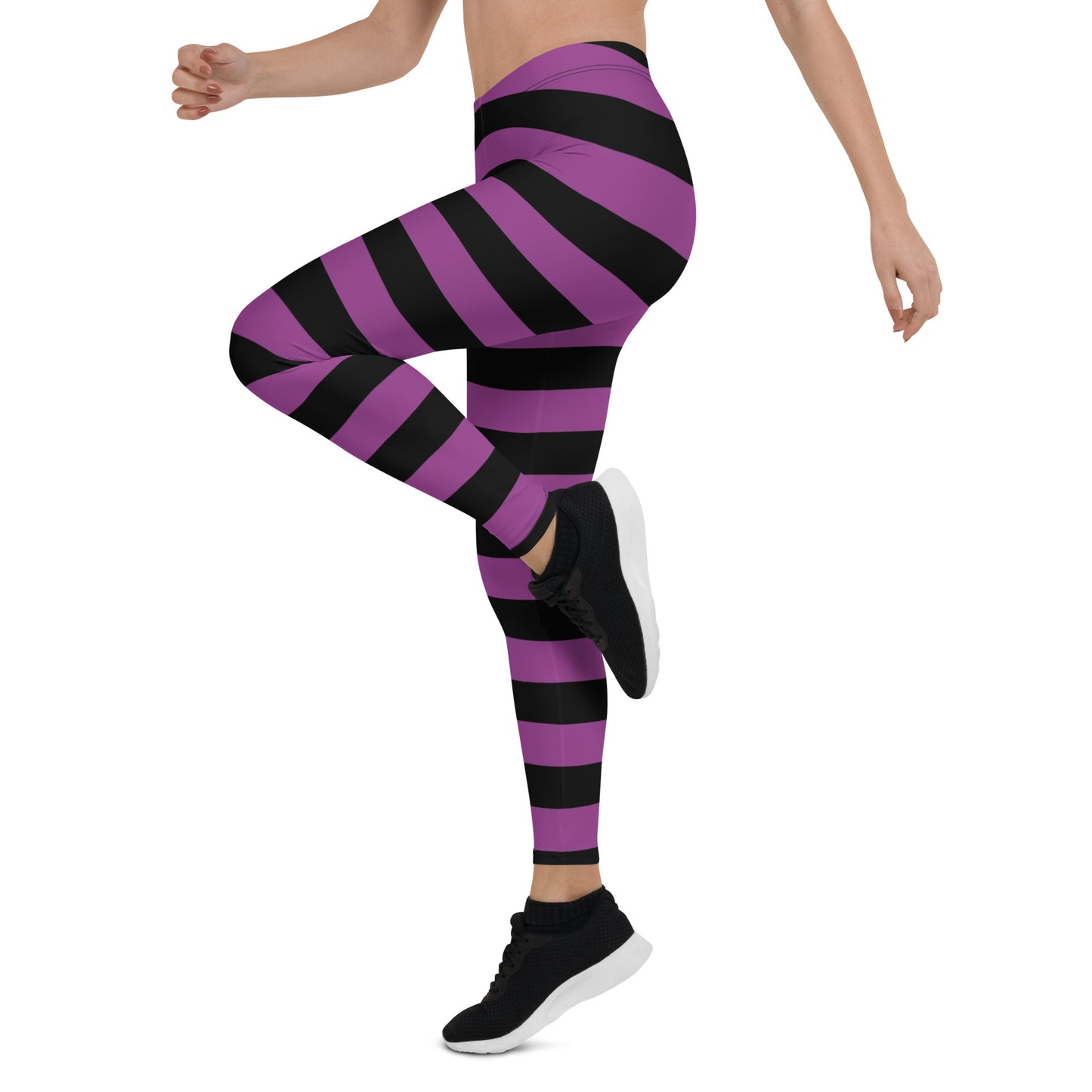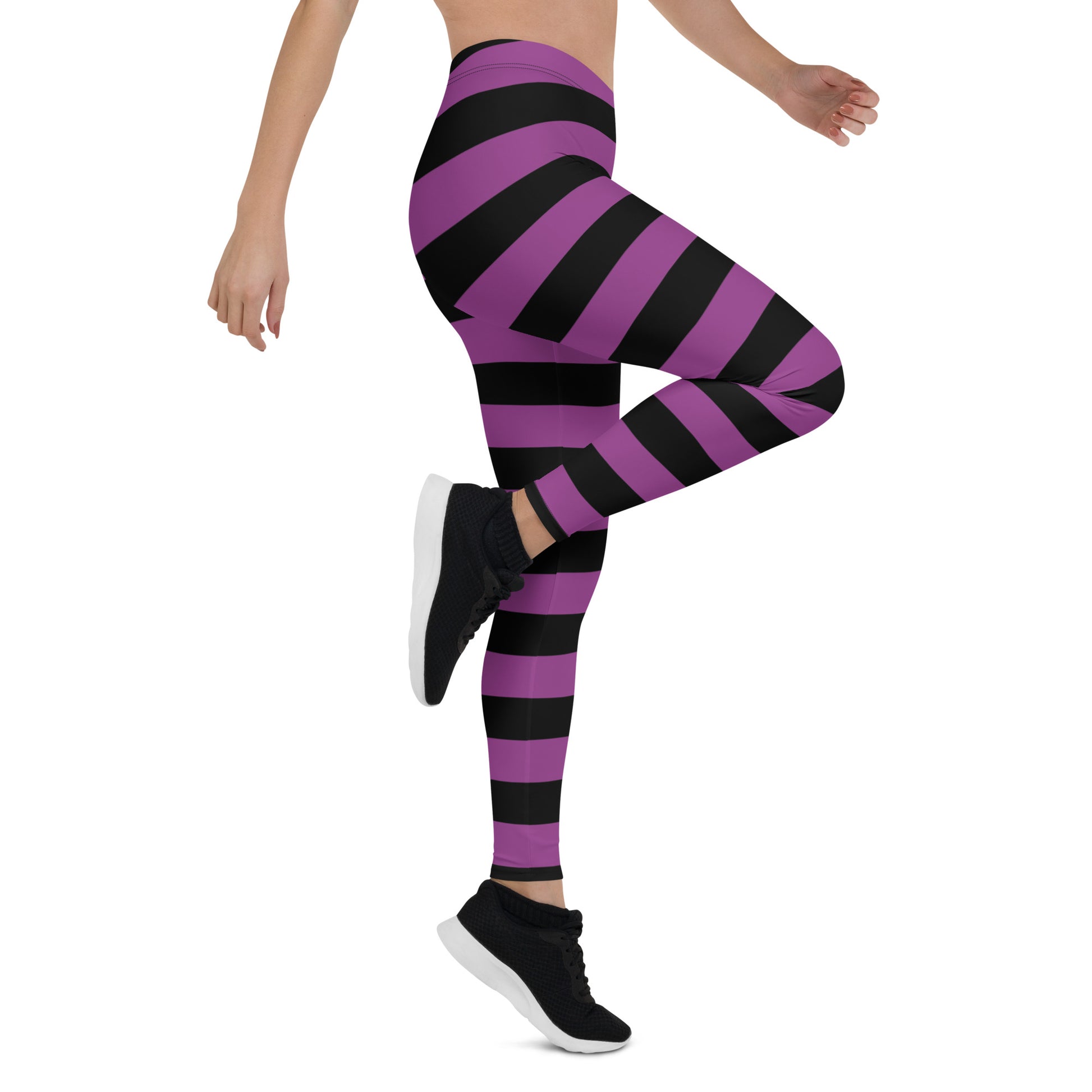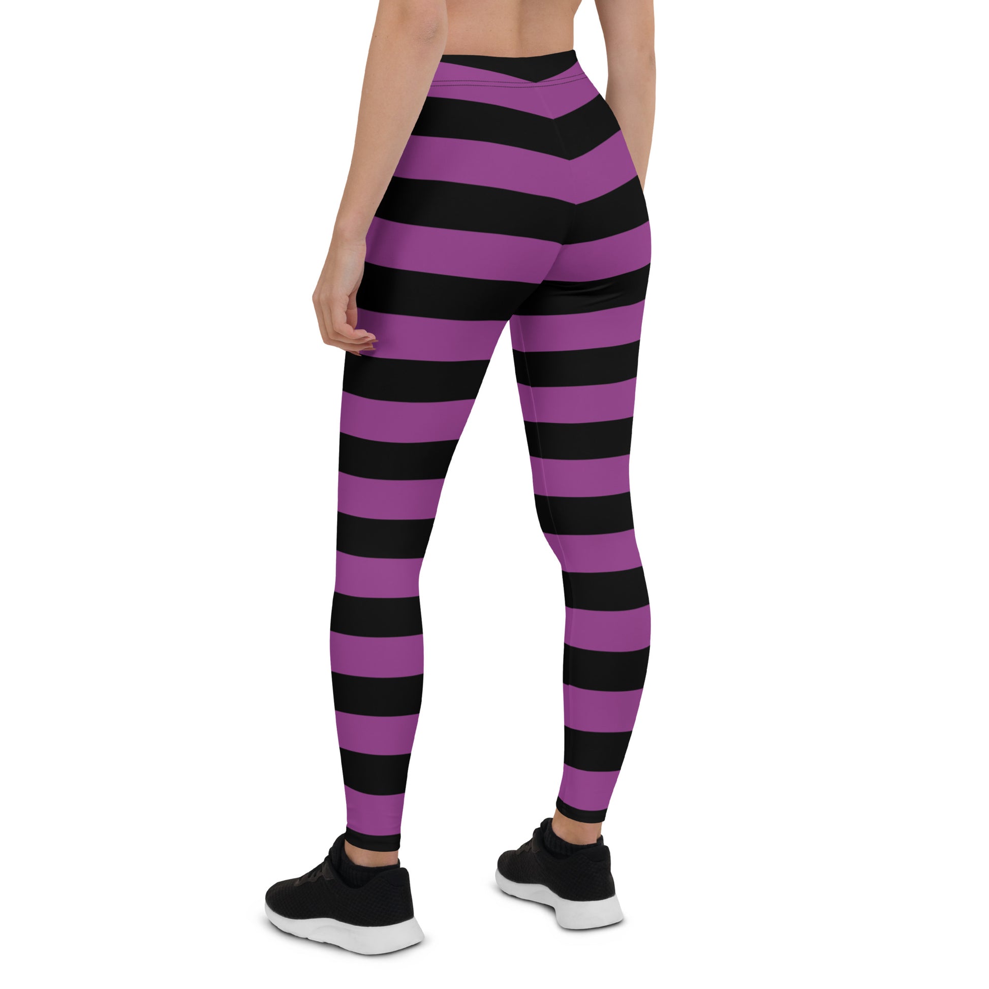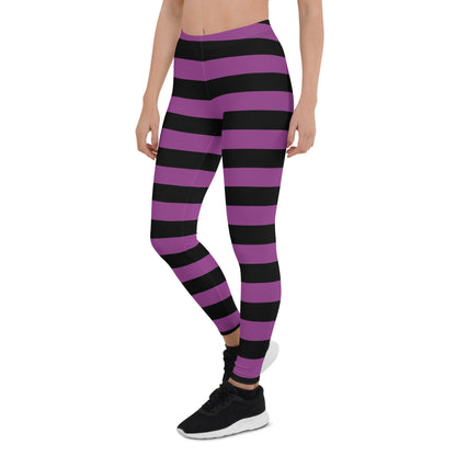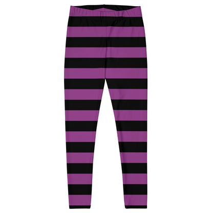 Black Purple Striped Leggings Women, Halloween Witch Goth Printed Yoga Pants Cute Graphic Workout Designer Tights Gift