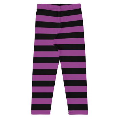 Black Purple Striped Kids Girls Leggings (2T-7), Halloween Witch Goth Toddler Children Printed Yoga Pants Tights Fun Daughter