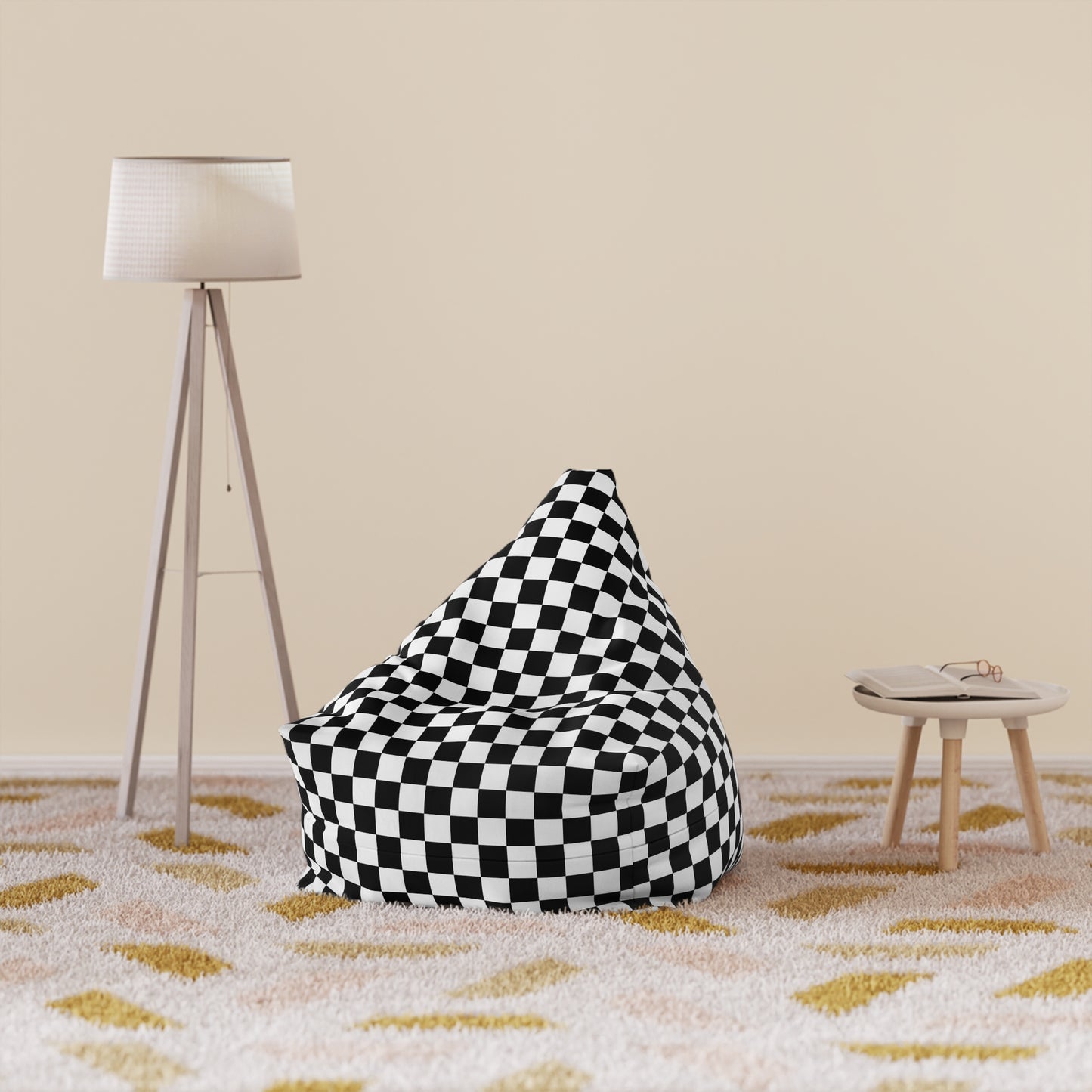 Black White Checkered Bean Bag Chair Cover, Check Furniture Triangle Small Large Adult Kids Sofa Apartment Removable Washable Dorm Decor
