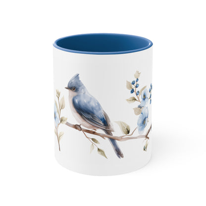 Blue Birds Coffee Mug, White Watercolor Flowers Art Ceramic Cup Tea Hot Chocolate Lover Unique Microwave Safe Novelty Cool Gift