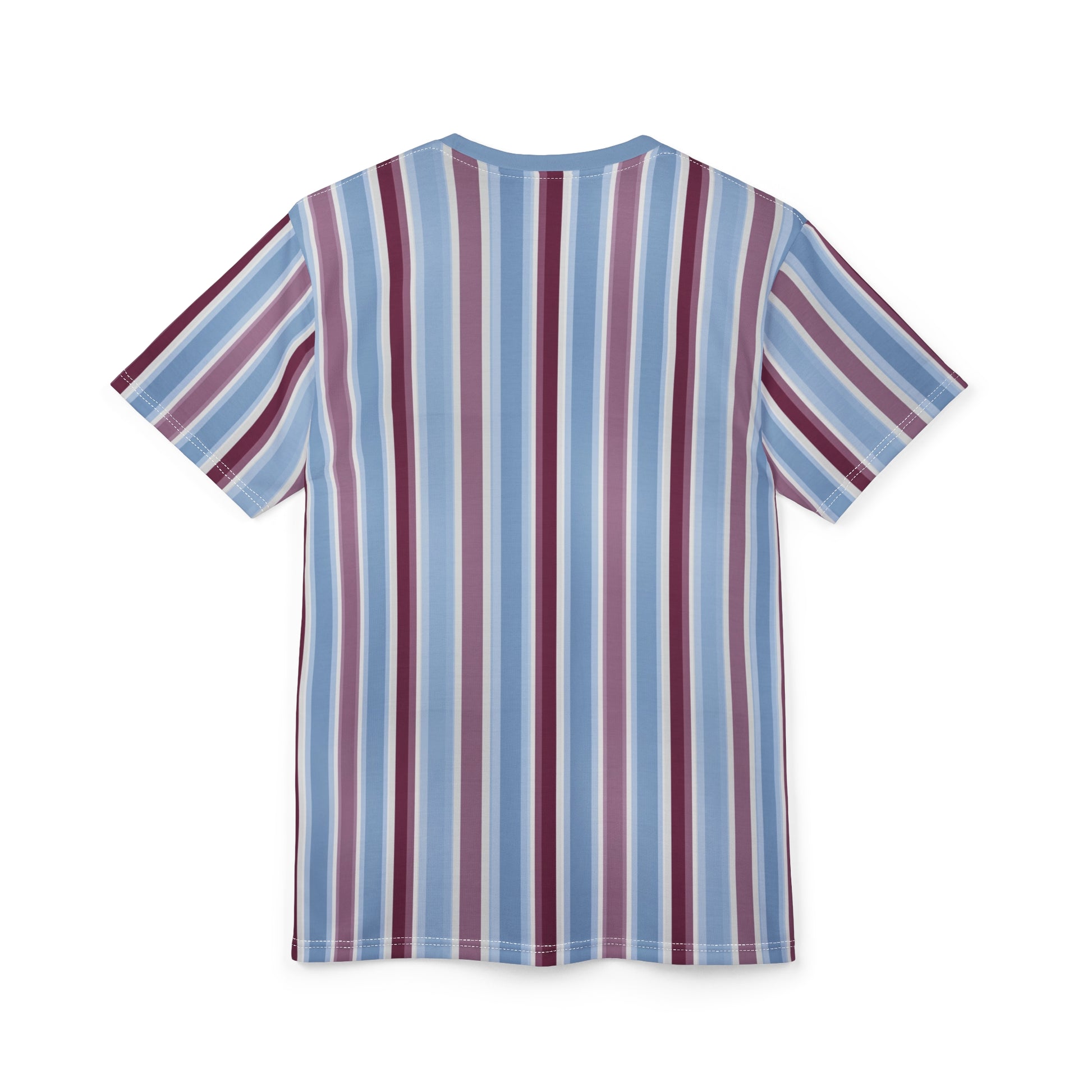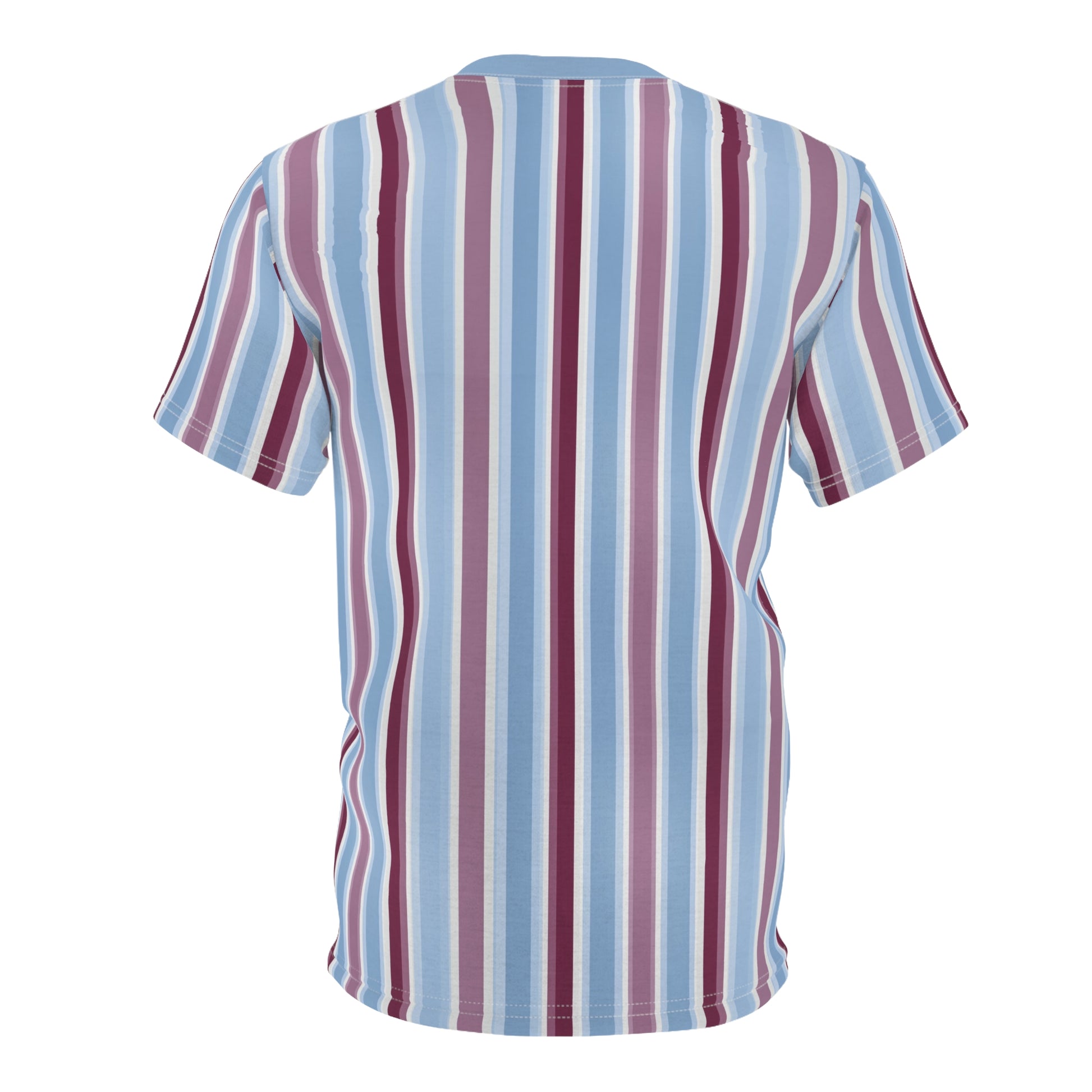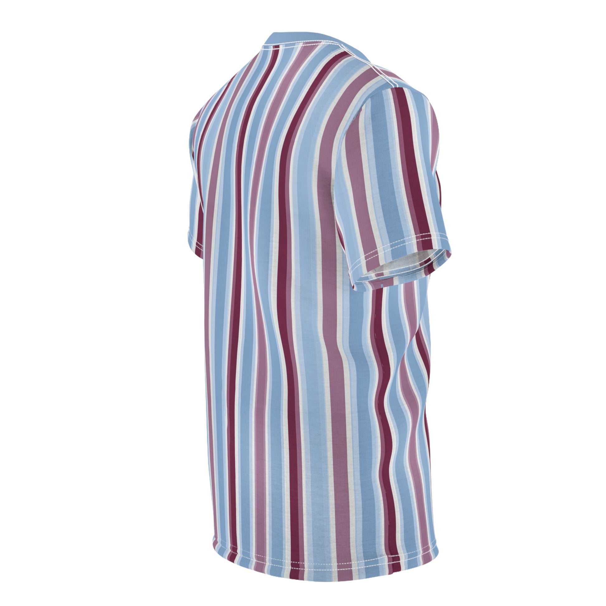 Blue Burgundy Striped Tshirt, Vertical Stripe Designer Aesthetic Lightweight Heavyweight Crewneck Men Women Tee Top Short Sleeve Shirt
