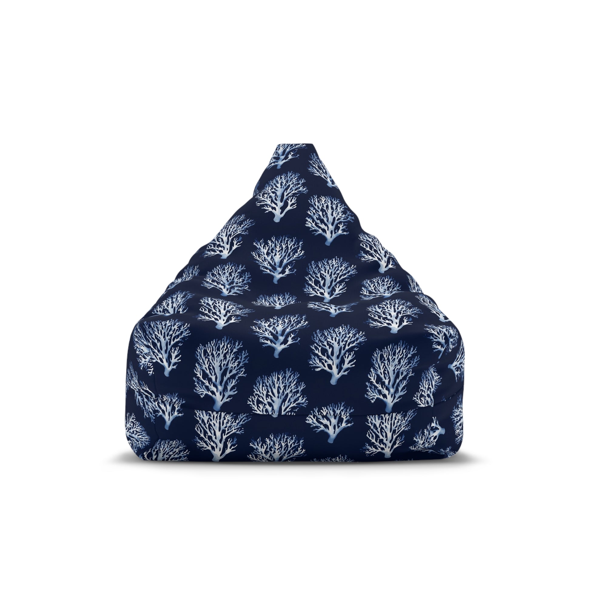 Blue Navy Coral Bean Bag Chair Cover, Coastal Ocean Washable Triangle Small Large Adult Children Kids Sofa Apartment Dorm Decor Unfilled