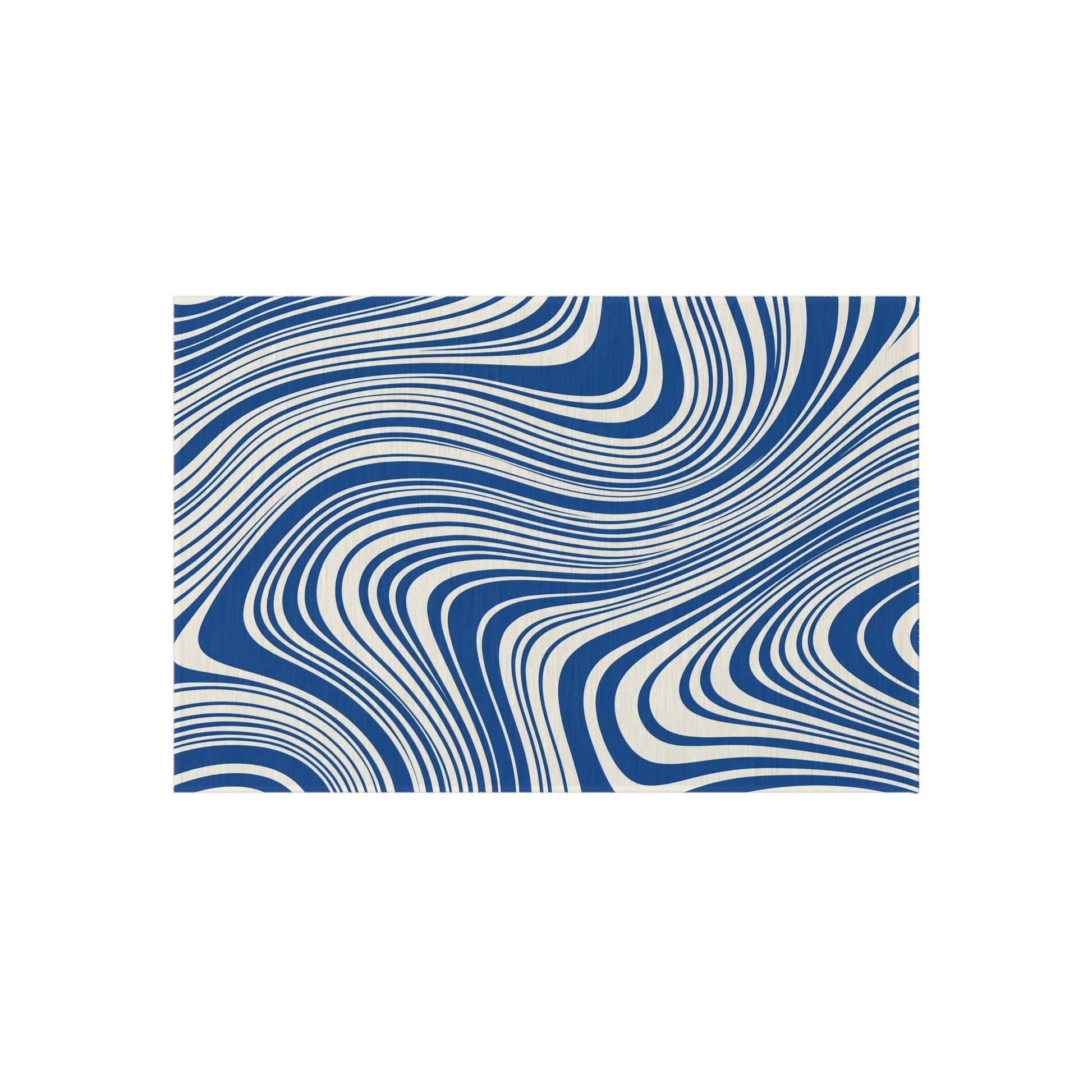 Blue Wavy Outdoor Area Rug, Geometric Modern Waterproof Patio Porch Exterior Durable Carpet Small Large 2x3 4x6 3x5 5x7 8x10 Camping Mat