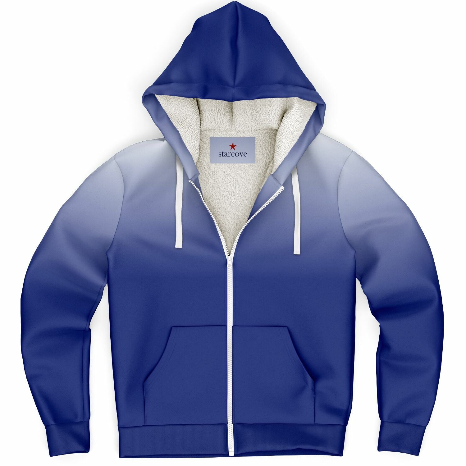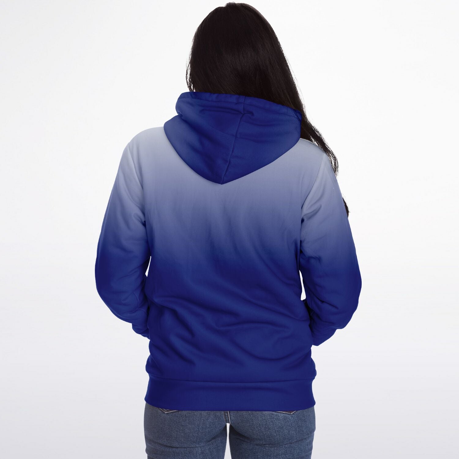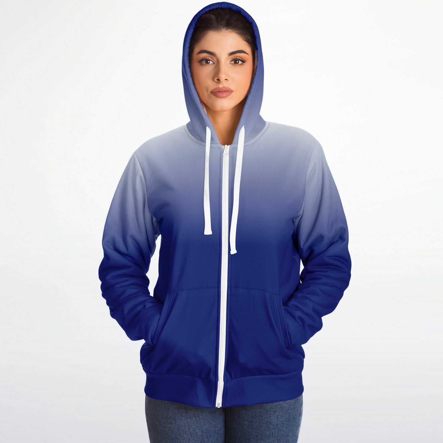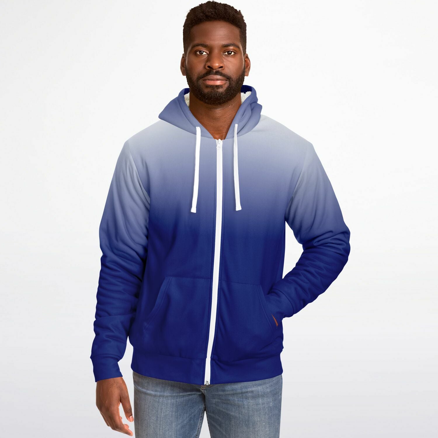 Blue White Ombre Zip Up Fleece Lined Hoodie, Tie Dye Gradient Heavyweight Full Zipper Pocket Men Women Unisex Hooded Sweatshirt Jacket