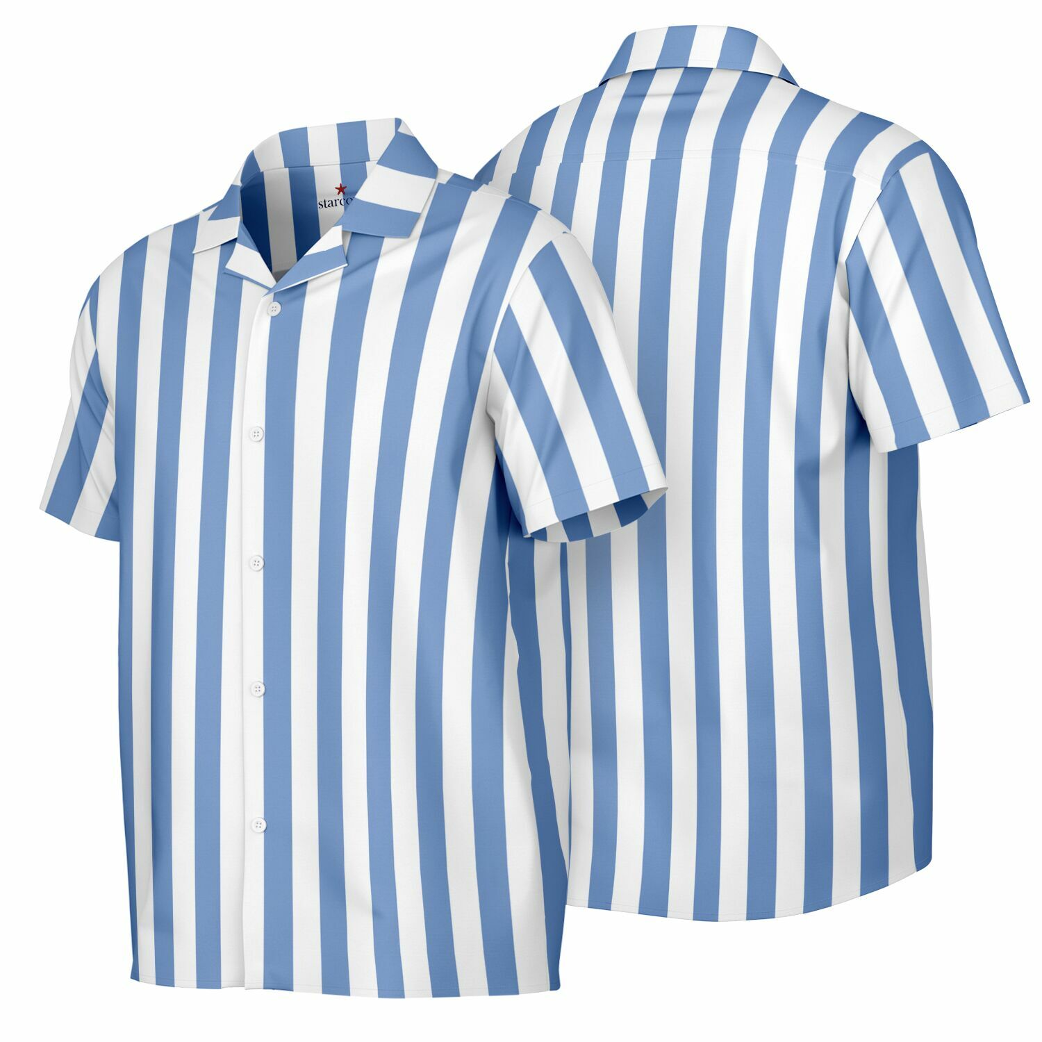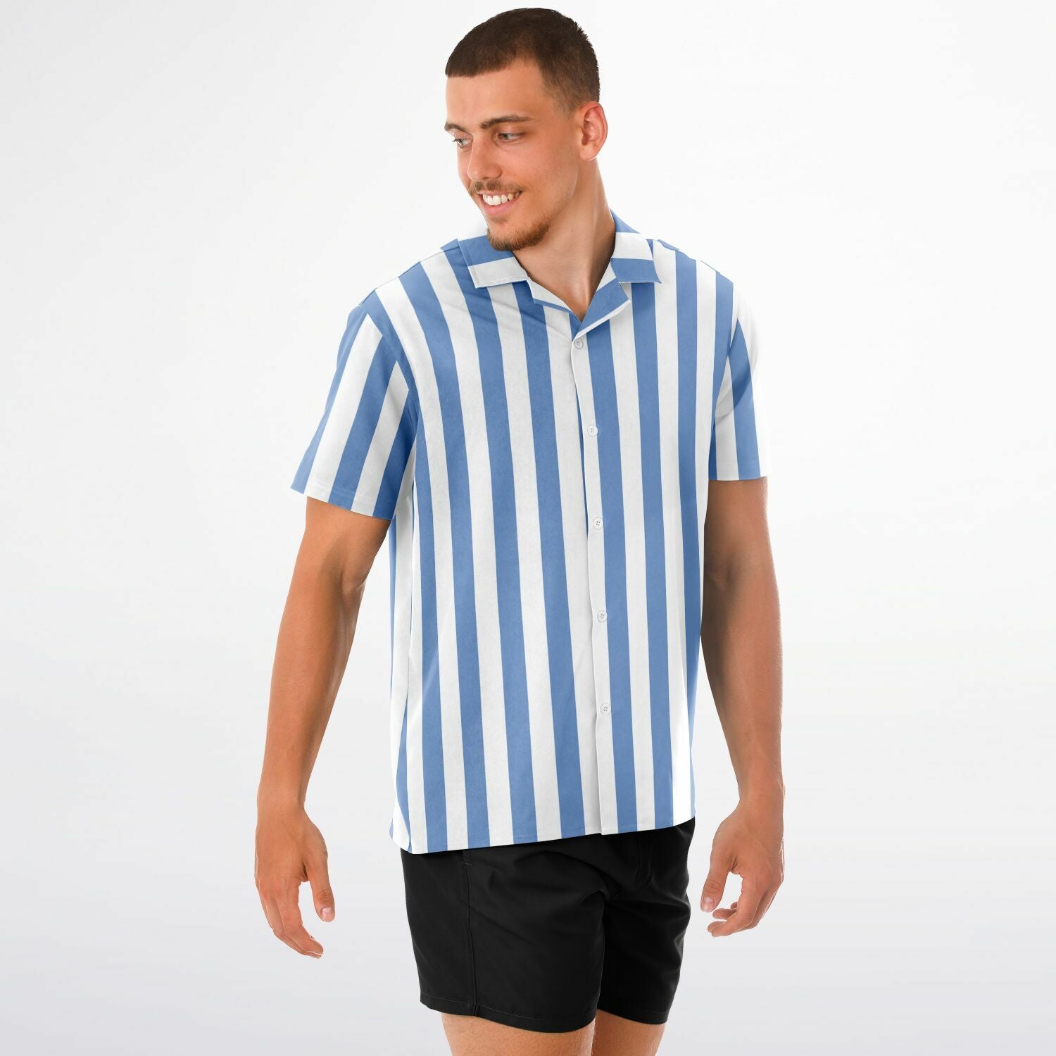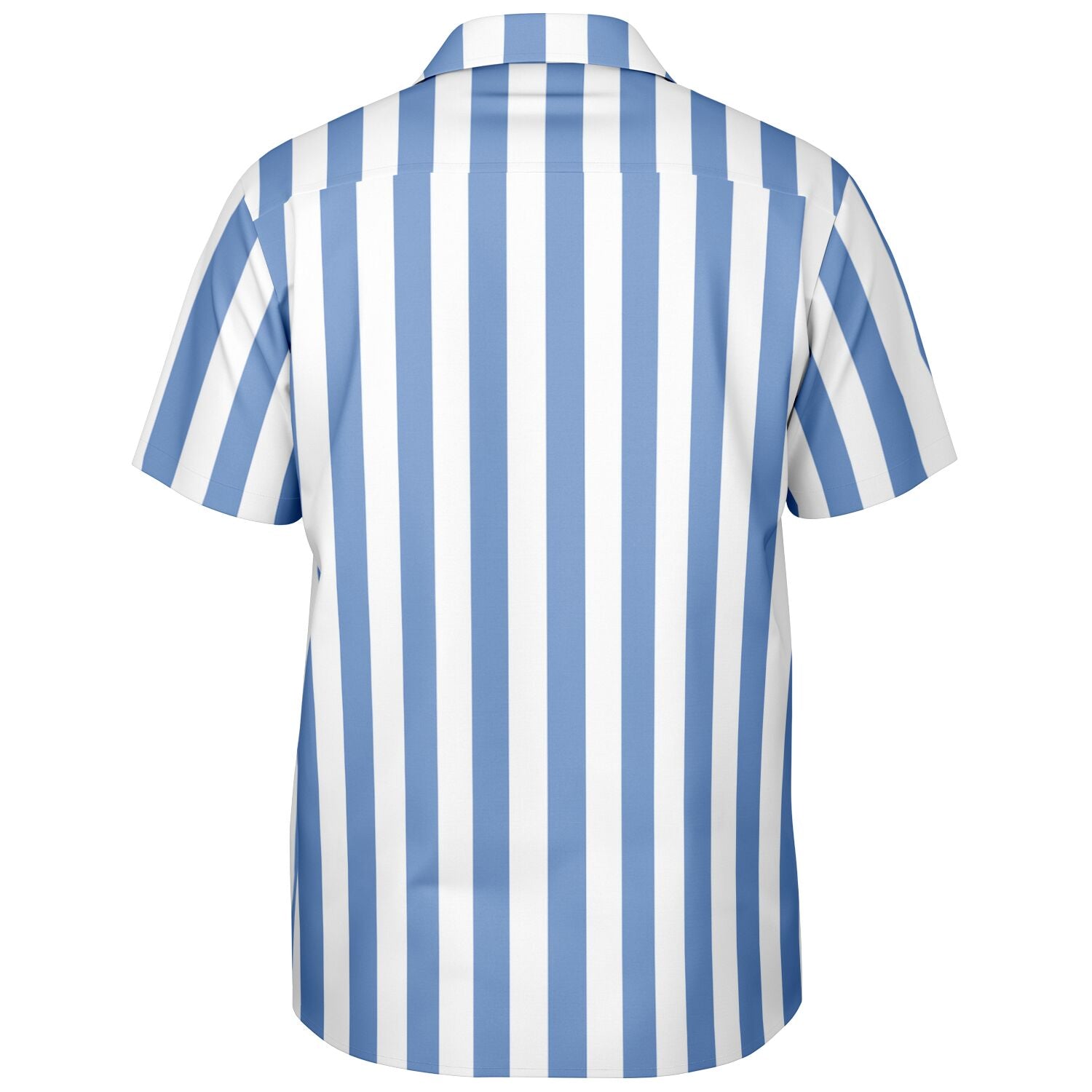 Blue White Striped Men Button Down Shirt, Beach Spread Collar Short Sleeve Guys Casual Print Buttoned Up Plus Size Unisex