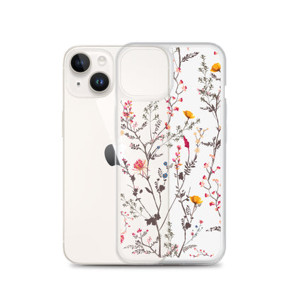 Botanical Wild Flowers Clear iPhone 15 14 13 12 Pro Max Case, Print Cute Aesthetic iPhone 11 Mini SE XS XR X 8 7 Cell Phone Transparent
