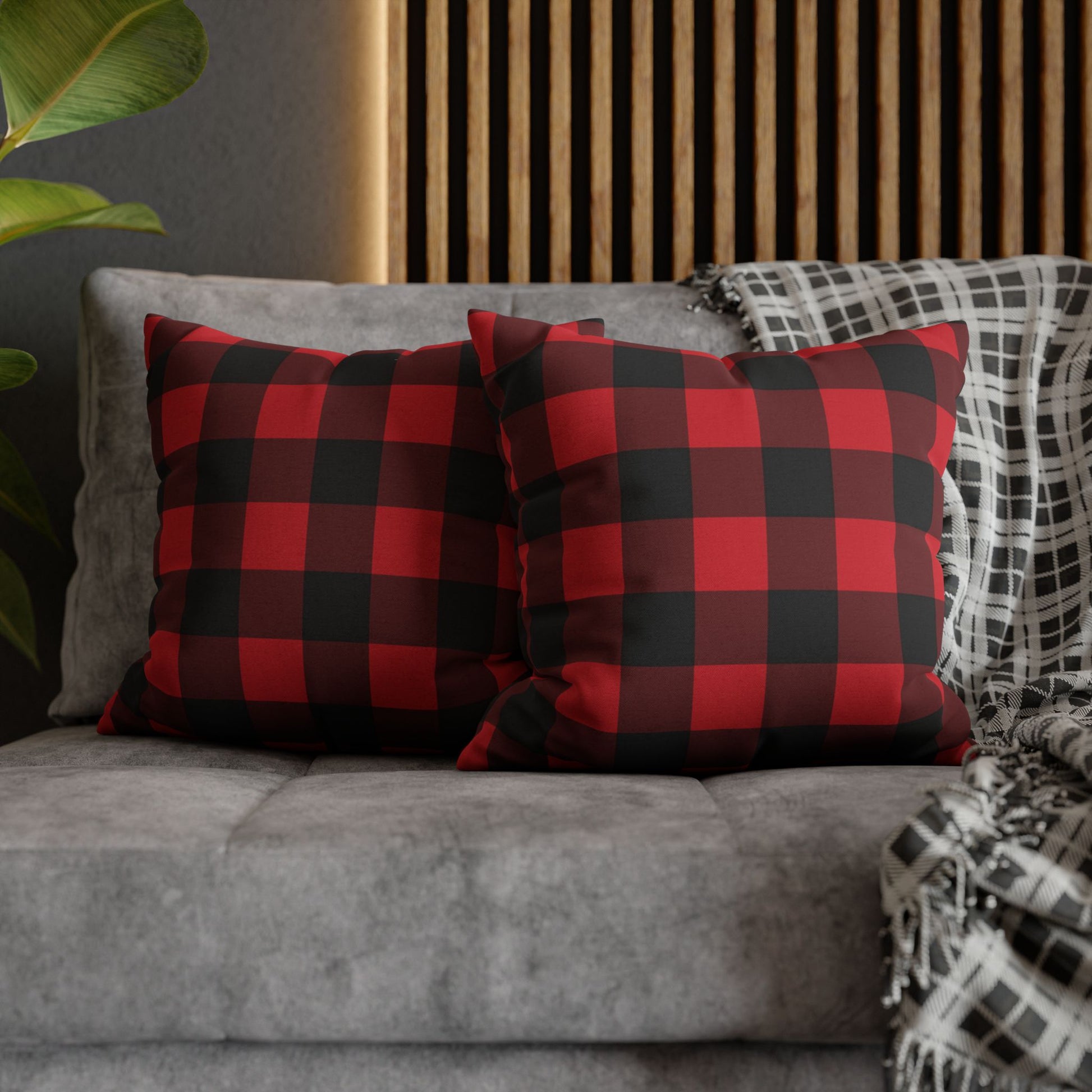 Red Buffalo Plaid Pillow Case, Black Check Square Christmas Throw Decorative Cover Decor Bedding Bed Accent Couch Sofa Bedroom