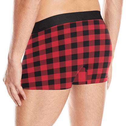 Buffalo Plaid Print Men Boxer Briefs, Red Black Underwear Funny Sexy Anniversary Gift Idea For Him Honeymoon Birthday Plus Size