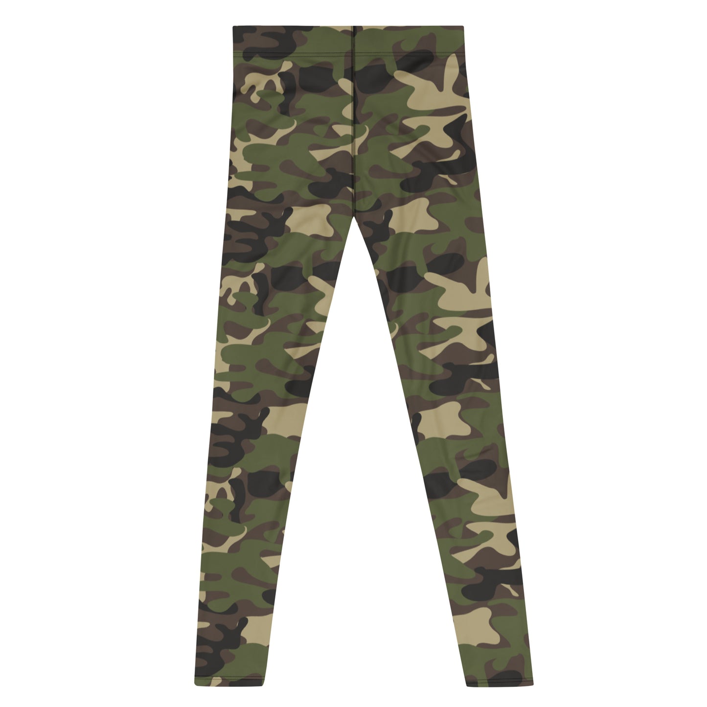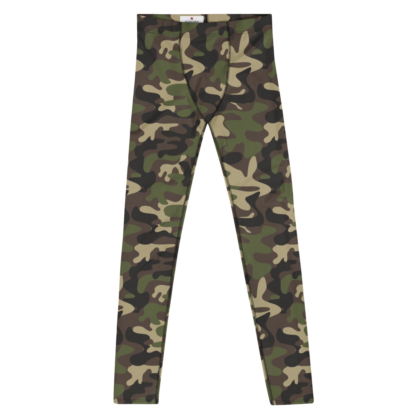 Camo Men Leggings, Camouflage Green Army Printed Yoga Sports Workout Festival Fitness Pants Tights
