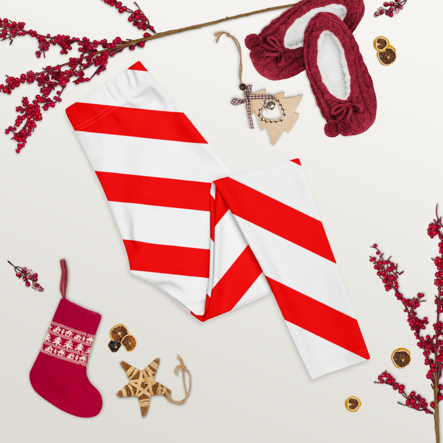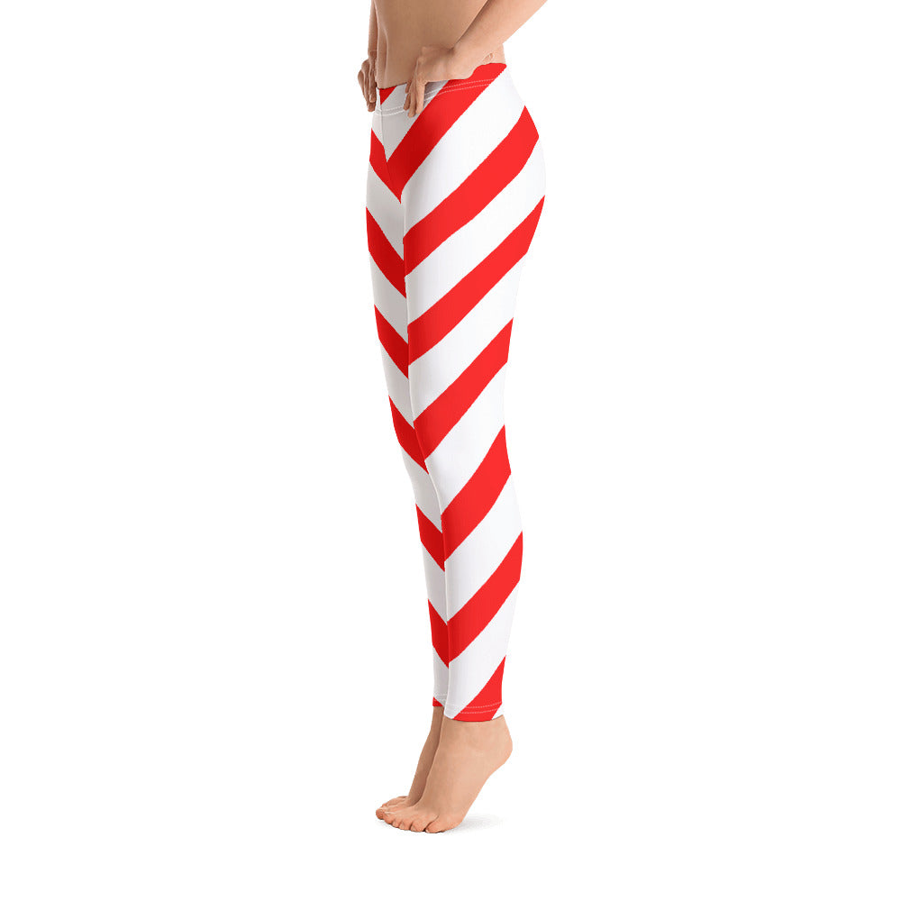 Candy Cane Leggings Women, Red White Striped Printed Yoga Pants Holiday Christmas Workout Fun Designer Tights