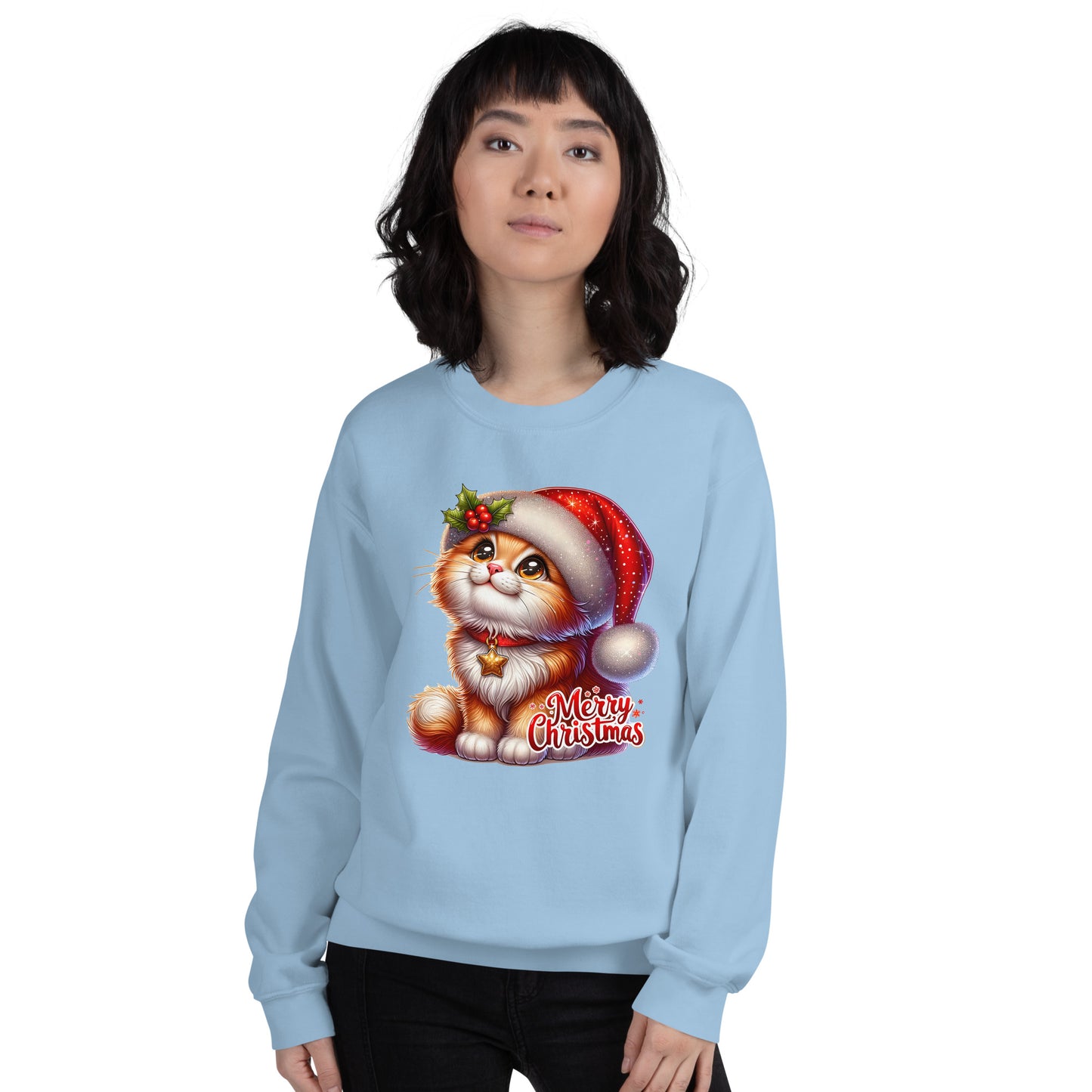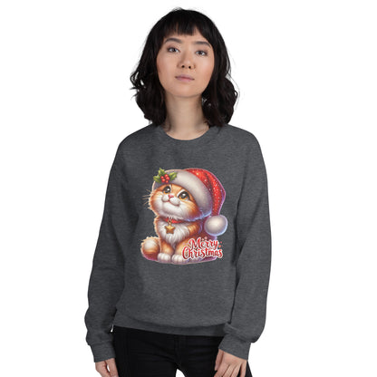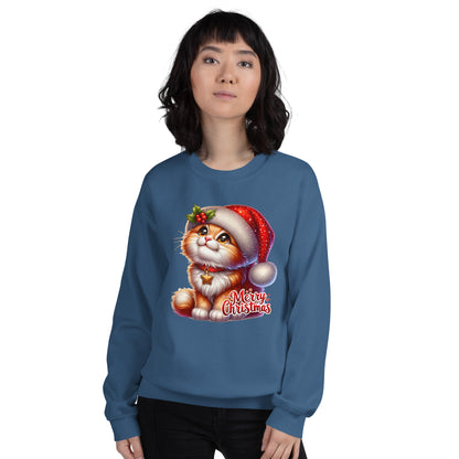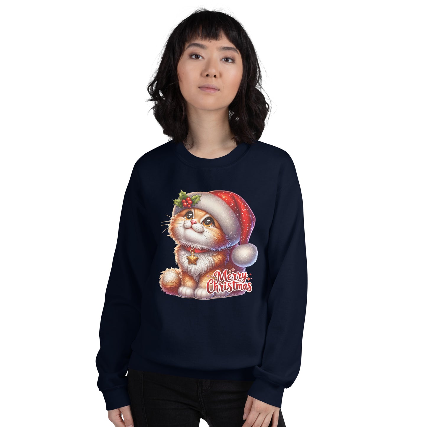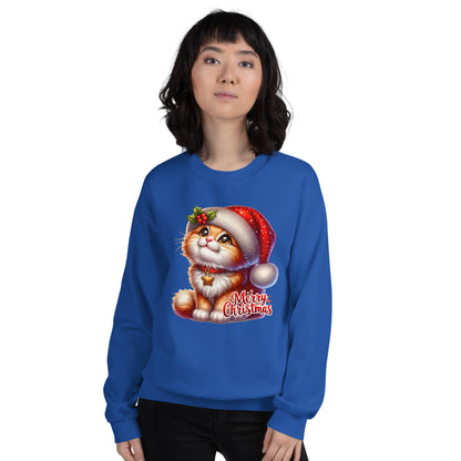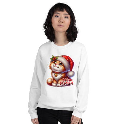 Cat Christmas Sweater, Meowy Cute Kitten Ugly Xmas Print Unisex Women Men Vintage Funny Party Winter Holiday Plus Size Sweatshirt