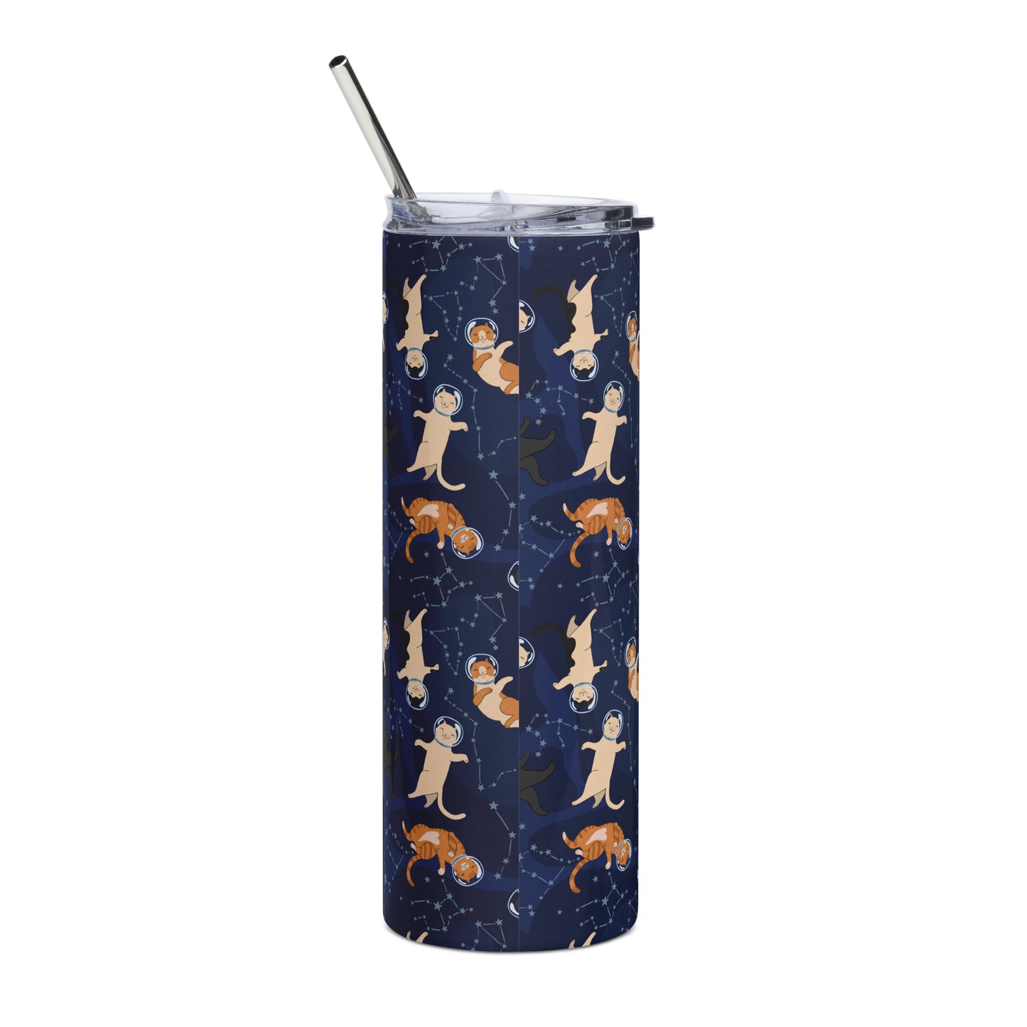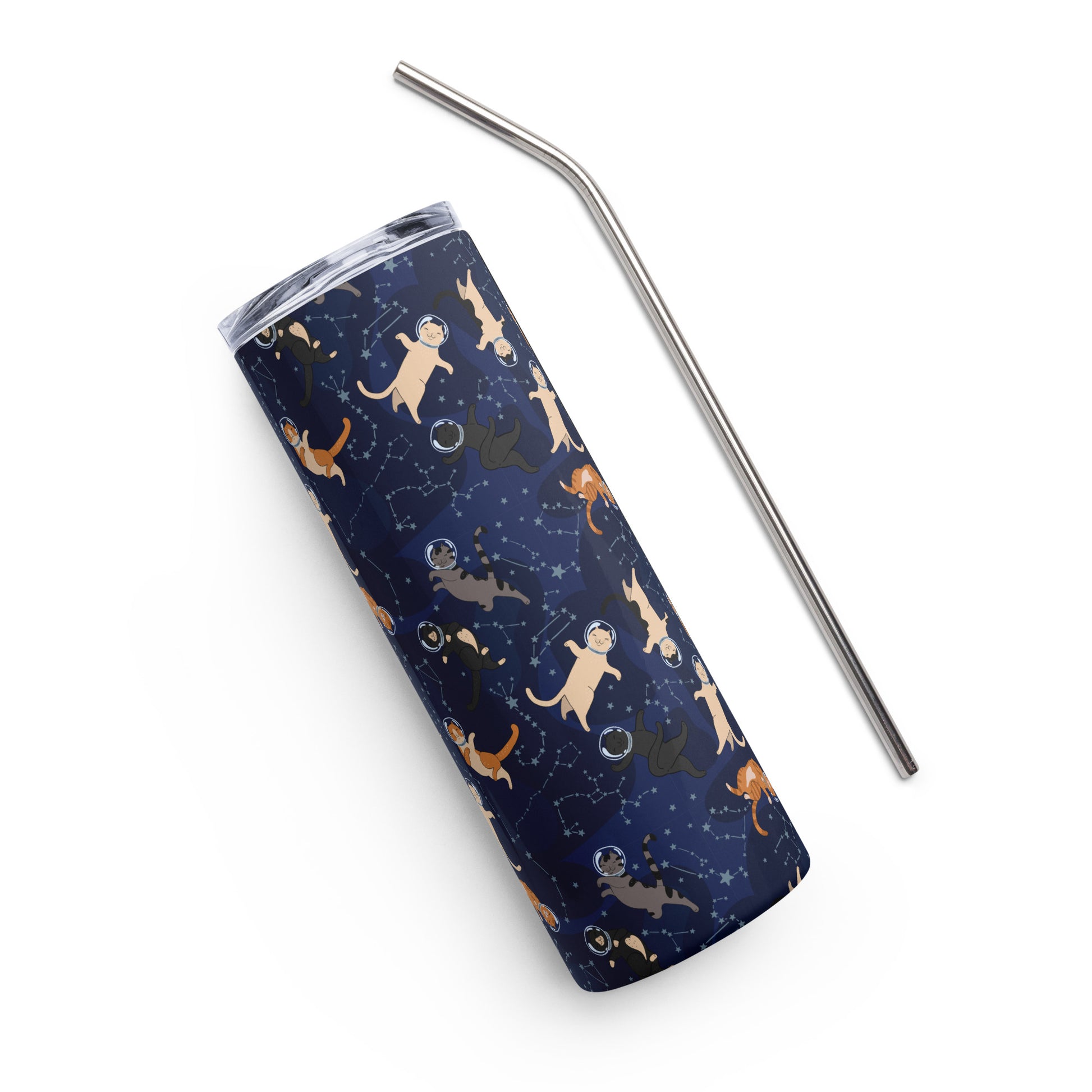 Cats in Space Stainless Steel Travel Mug Tumbler with Lid, Constellation Cup Flask Coffee Traveler 20oz Office Gift Men Women