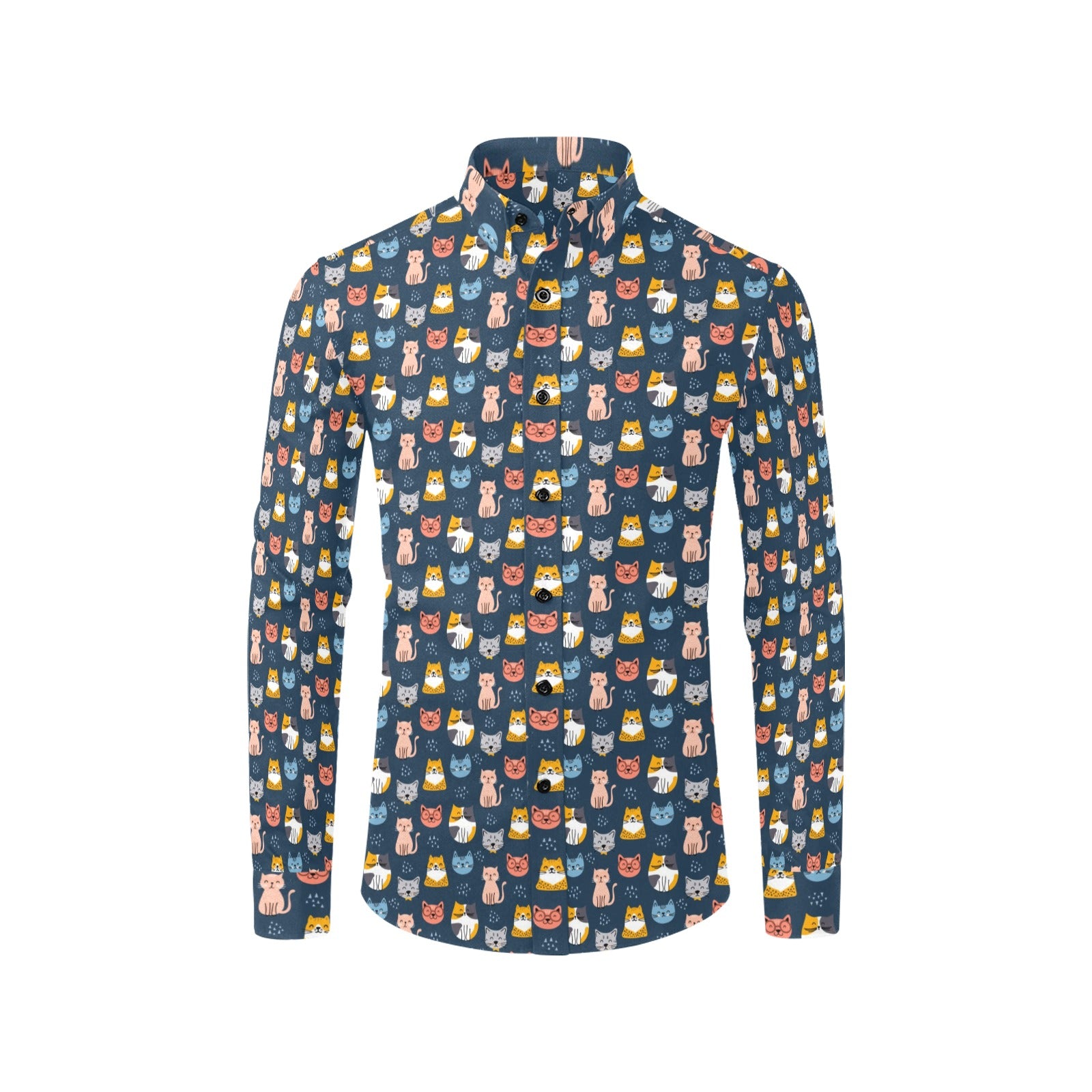 Cats Long Sleeve Men Button Up Shirt, Kitten Themed Print Unique Buttoned Down Collar Business Casual Dress Shirt Male with Chest Pocket