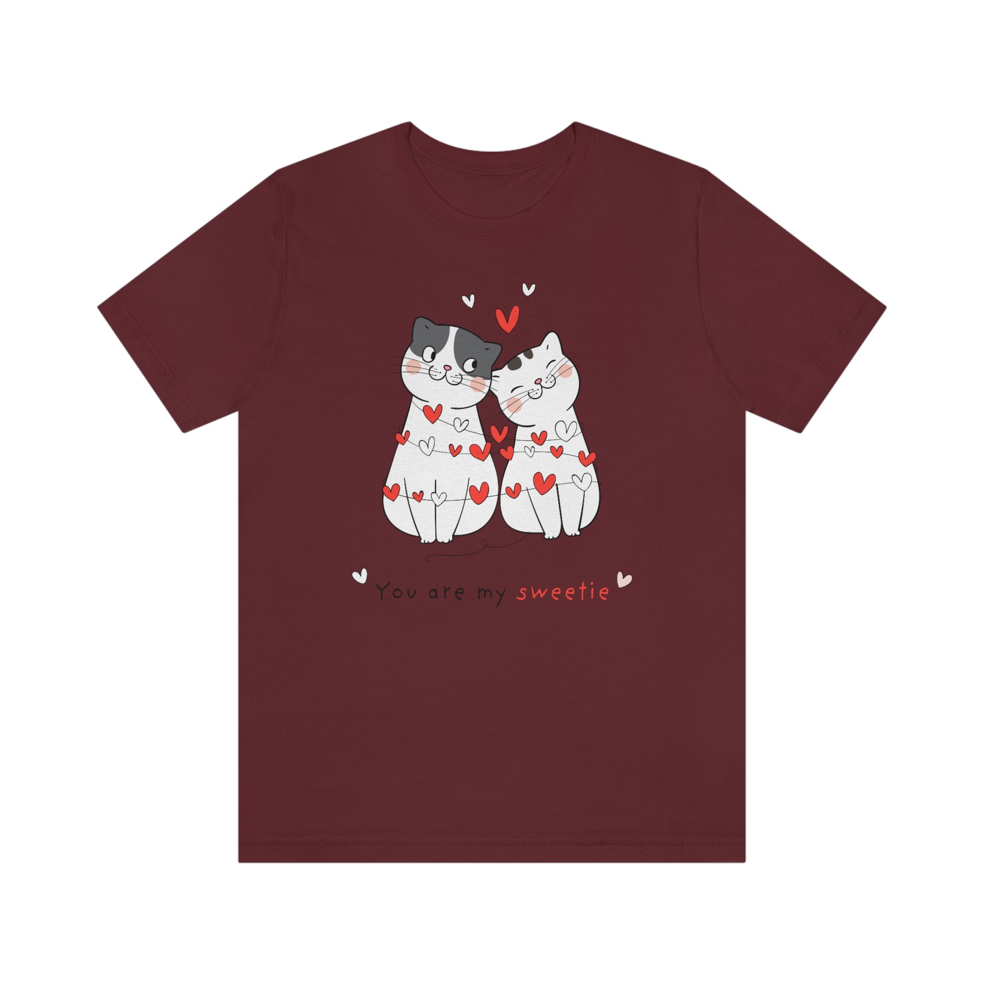 Cats Valentine's Day Tshirt, Hearts Love Sweety Kittens Unisex Women Adult Aesthetic Graphic Crewneck Tee Shirt Her Top