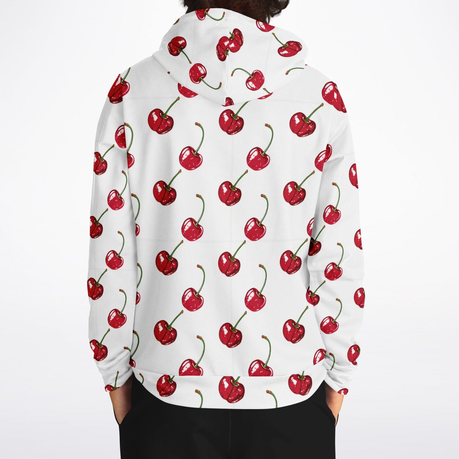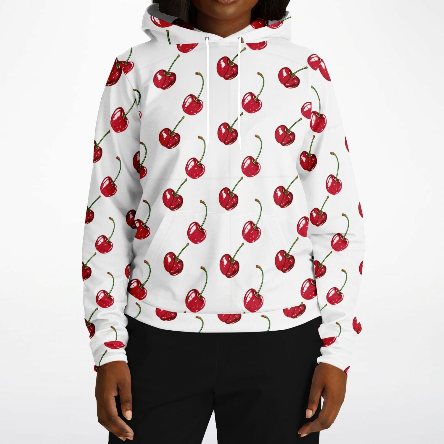 Cherry Hoodie, Red White Fruit Pullover Men Women Adult Aesthetic Graphic Cotton Hooded Sweatshirt with Pockets Designer Plus Size