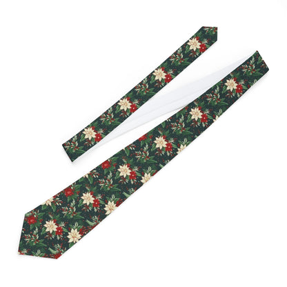 Christmas Floral Necktie, Green Red Berries Xmas Flowers Neck Tie Fancy Chic Gift for Him Men Tuxedo Groomsmen Groom Wedding Suit Cravat