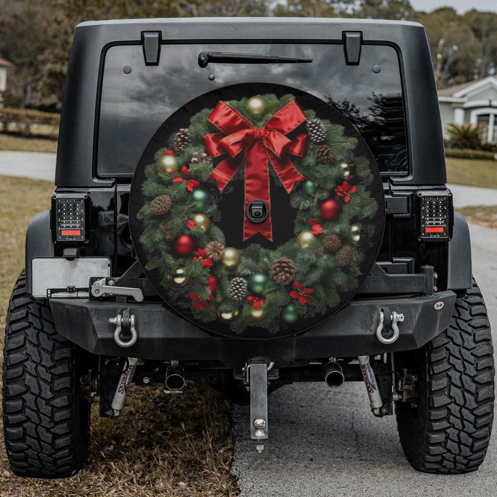 This unique and cool Christmas Wreath Spare Tire Wheel Cover is available with or without a convenient back-up camera hole. Designed to enhance your off-road adventures, this cover is perfect for a wide range of vehicles including SUVs, cars, RVs, campers, and trailers.
