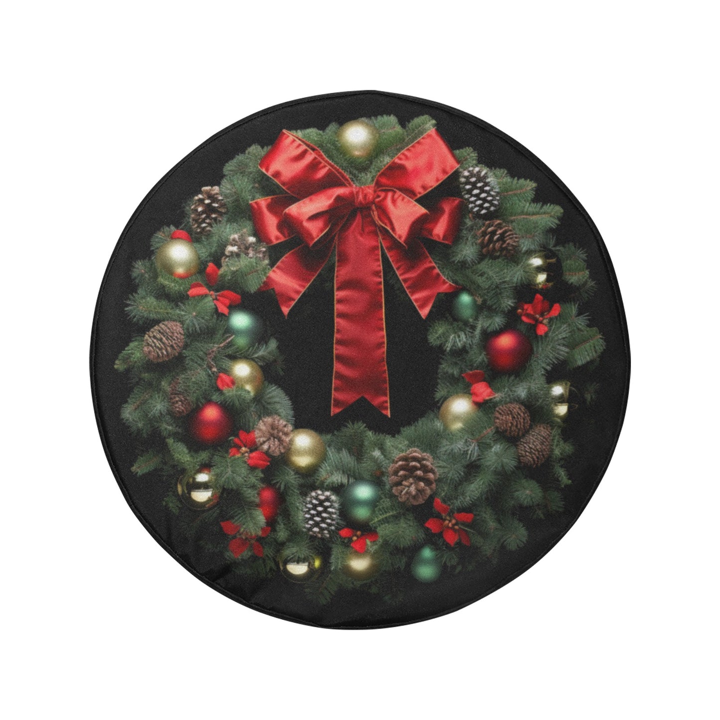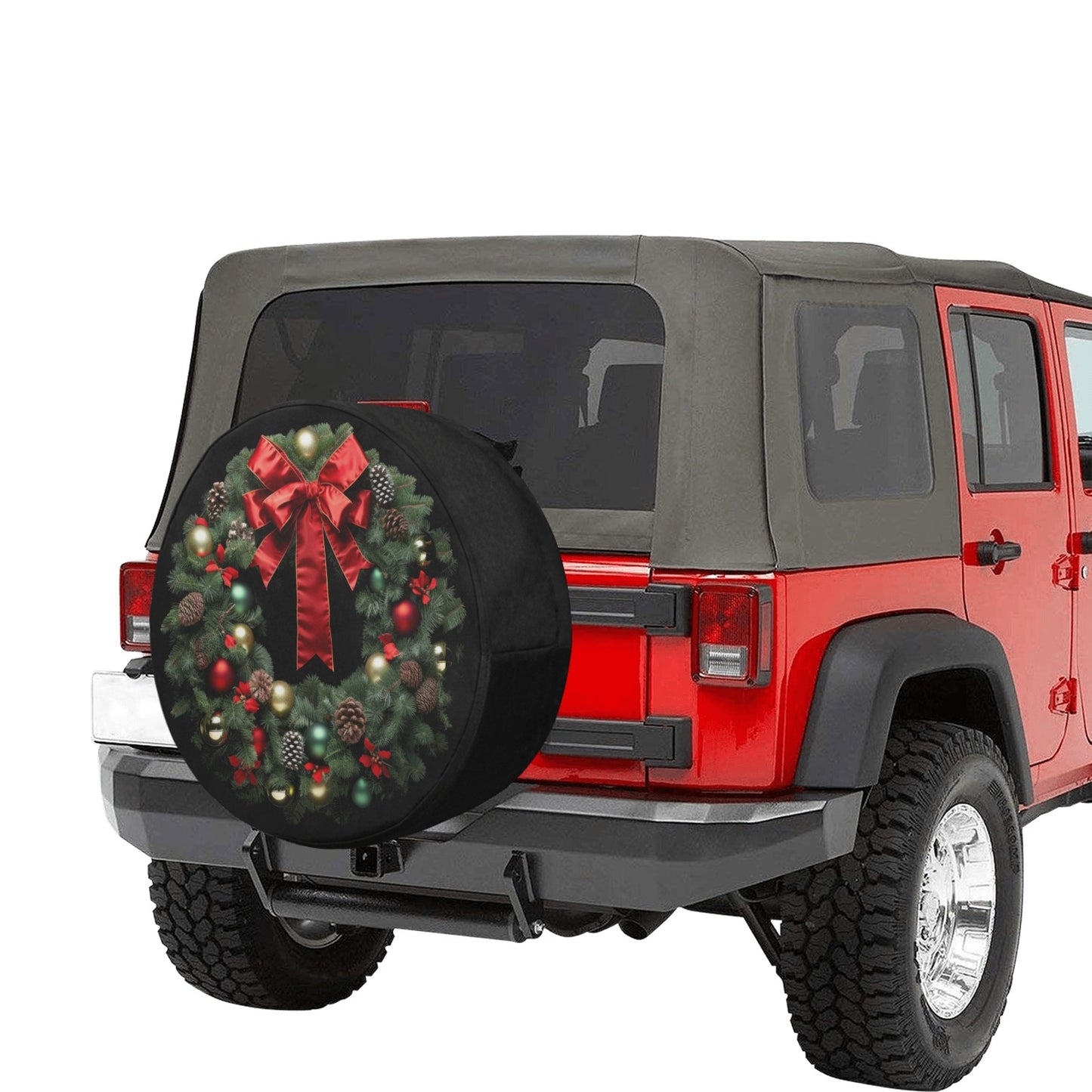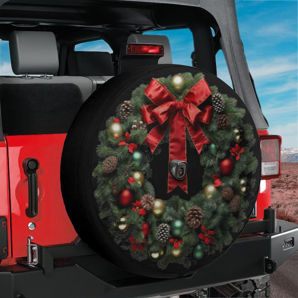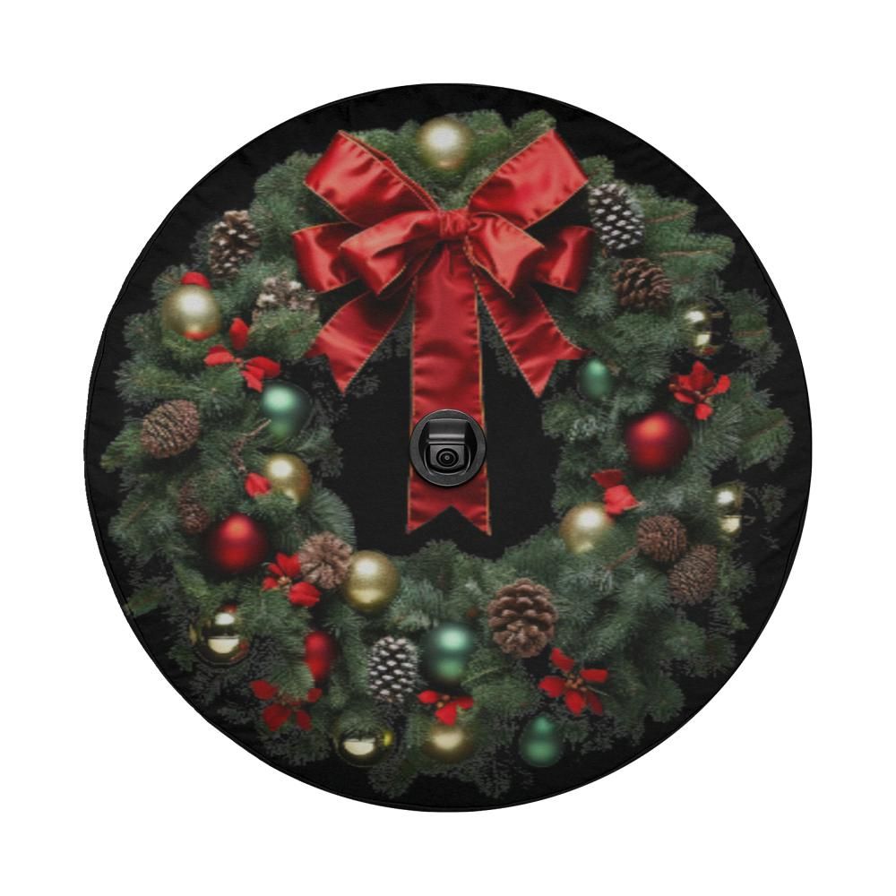 Christmas Wreath Spare Rear Tire Cover, Xmas Black Wheel Auto Back Up Camera Hole Unique Design Men Women Back RV Trailer Protector